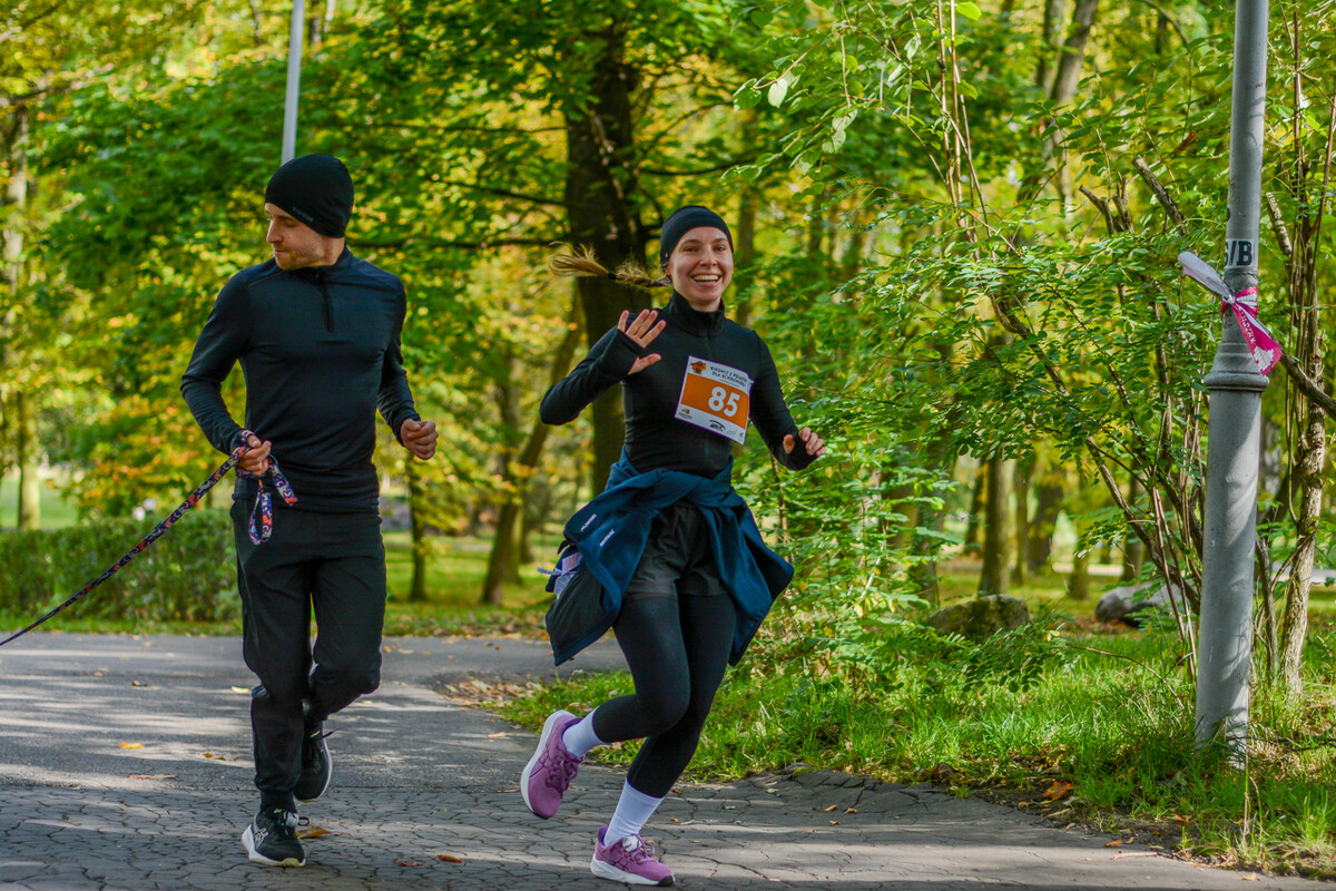 Dzisiejszy start biegu głównego, który był zaplanowany na godzinę 10:00, opóźnił się z powodu dużego zainteresowania. Gdy udało mi się dotrzeć na miejsce, około godziny 9:50 na listy startowe zapisywało się jeszcze kilkadziesiąt osób.  Mniej więcej pół godziny później rozpoczęto krótką rozgrzewkę, a po chwili odliczanie i uczestnicy spotkania wyruszyli na trasę liczącą od 2 do 5 km.
