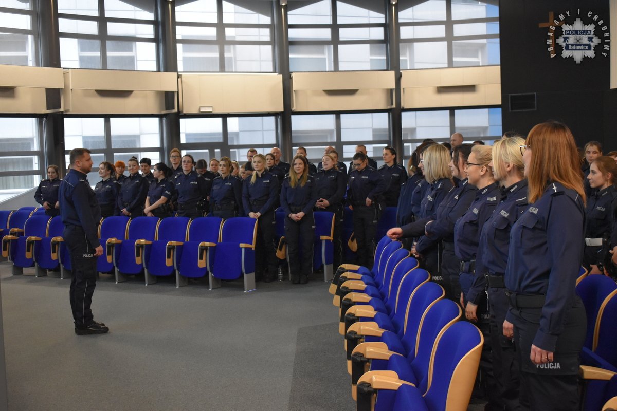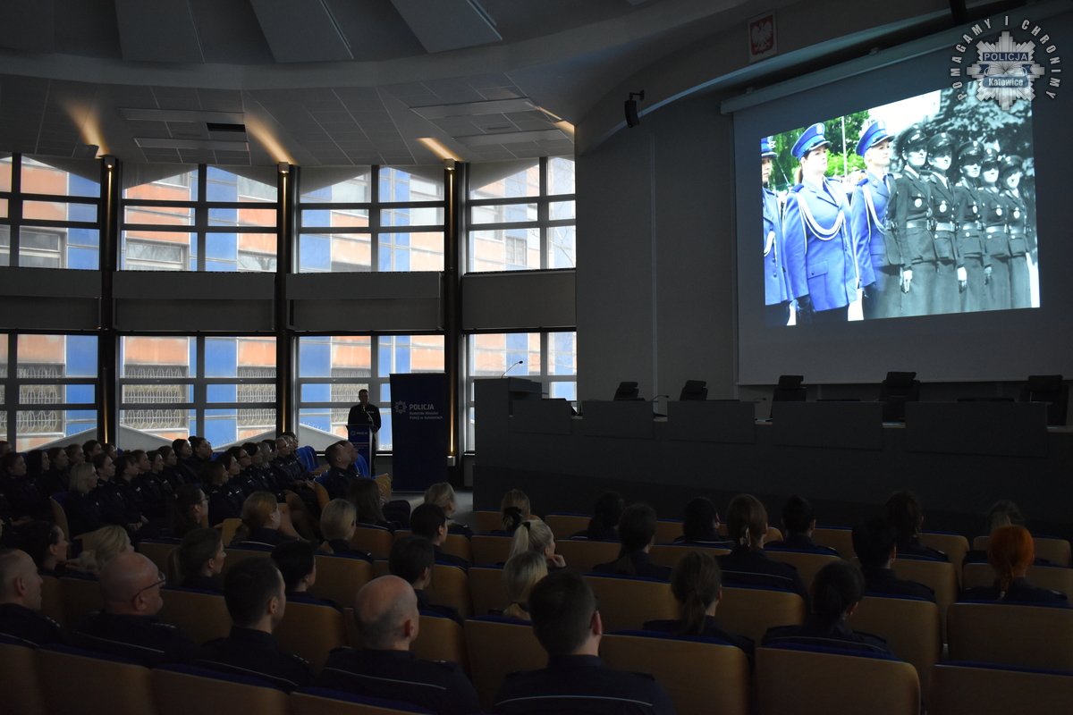 Po projekcji głos zabrał Komendant Miejski Policji w Katowicach, który wyraził uznanie dla policjantek, dziękując im za codzienną służbę i podkreślając ich rosnącą liczbę w strukturach Policji. Podkreślił, że ich obecność w jednostkach policyjnych to nie tylko kwestia równouprawnienia, ale także kluczowy element zapewnienia bezpieczeństwa.