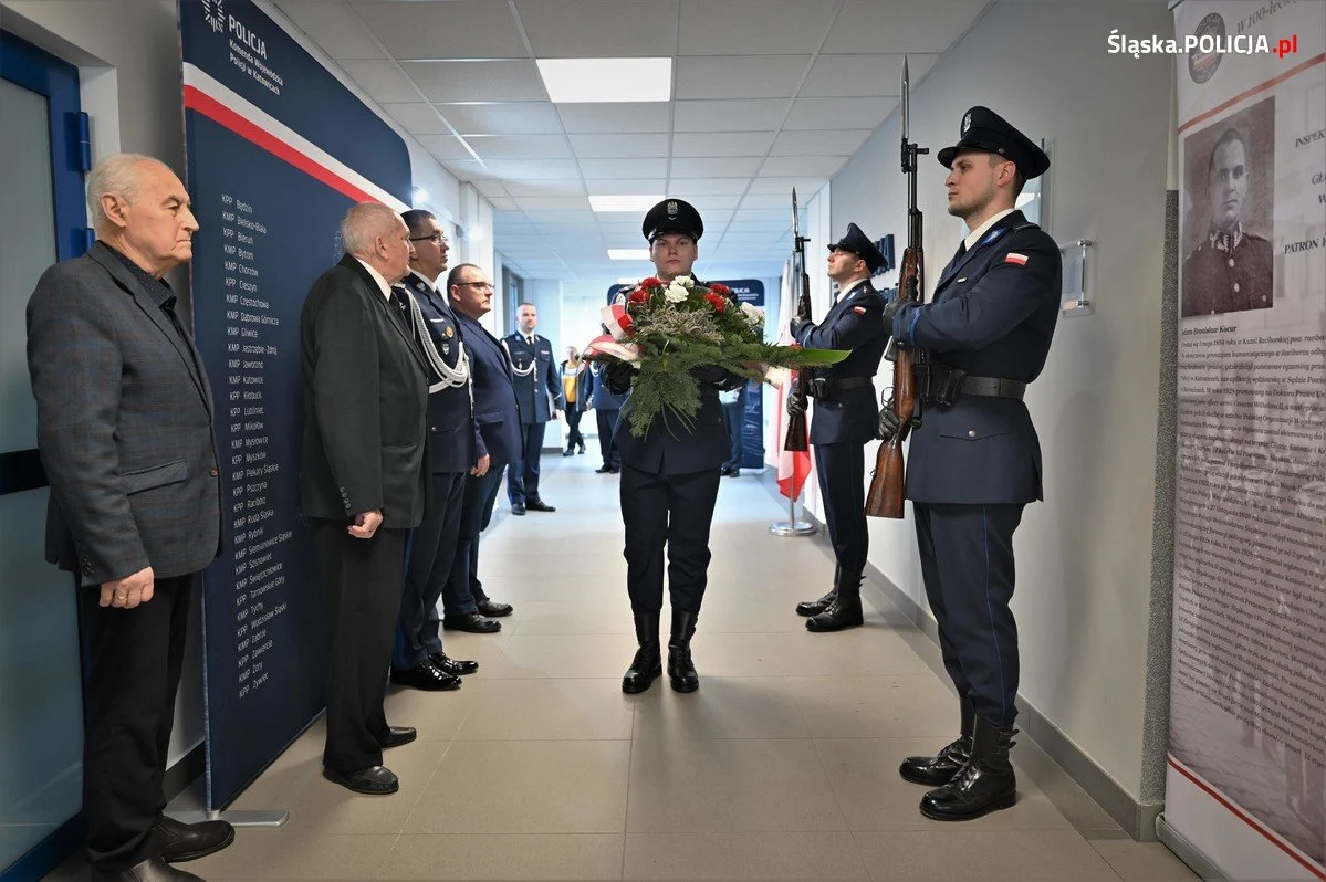 W Komendzie Wojewódzkiej Policji w Katowicach odbyła się uroczystość upamiętniająca rocznicę ustanowienia Ustawy o Policji Województwa Śląskiego. 100 lat temu Sejm Śląski II RP uchwalił akt prawny dotyczący tej siostrzanej formacji Policji Państwowej. Uczestnicy wydarzenia złożyli wiązanki kwiatów pod tablicą poświęconą insp. dr. Adamowi Kocurowi – patronowi siedziby śląskiej Policji.
