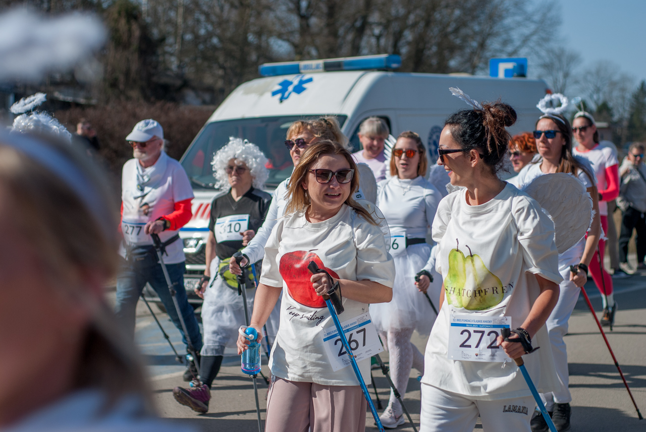 Chwilę po 11:00 wystartował główny bieg dzisiejszego dnia, a mianowicie ten na dystansie 5 kilometrów. Kilkuset biegaczy, a po nich kilkudziesięciu zawodników w kategorii nordic walking ruszyło, by pokonać trasę corocznych zawodów.
