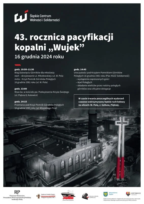 Jednym z ważnych elementów obchodów jest Bieg Dziewięciu Górników 2024, który upamiętnia dziewięciu górników, którzy zginęli podczas pacyfikacji.