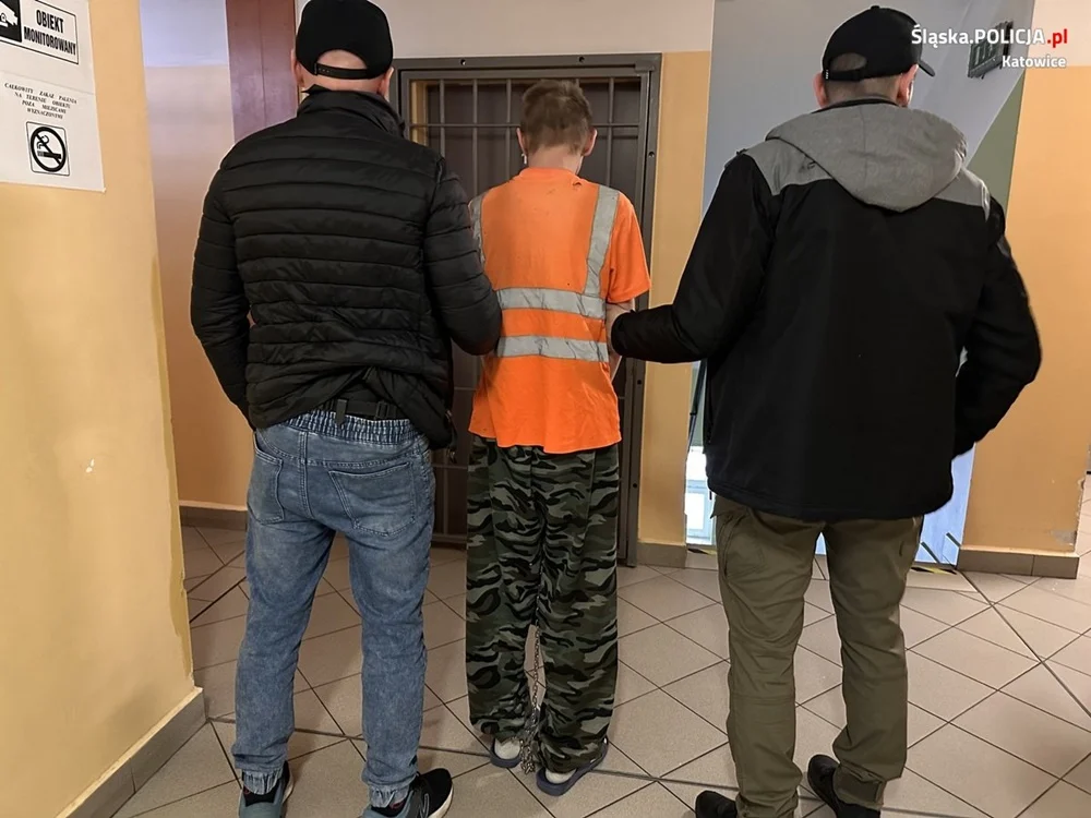 Funkcjonariusze NGW OPP Katowice zatrzymali agresora. Mężczyzna był pod wpływem alkoholu. Przyznał policjantom również, że zażywał narkotyki. Badanie trzeźwości wskazało, że w chwili zatrzymania miał prawie 2,5 promila alkoholu w organizmie. Zatrzymany został osadzony w policyjnym areszcie. Na miejsce została wezwana karetka pogotowia, która przewiozła do szpitala nastolatka. Chłopiec w szpitalu został zaopatrzony i jeszcze tego samego dnia zwolniony do domu pod opiekę rodziców. Jego życiu i zdrowiu nie zagraża niebezpieczeństwo. Policjanci Wydziału Kryminalnego Komendy Miejskiej Policji w Katowicach prowadzą czynności w sprawie ataku mężczyzny na nastolatka. Zbierany jest m.in. materiał dowodowy, przesłuchiwani są świadkowie, powoływani biegli.