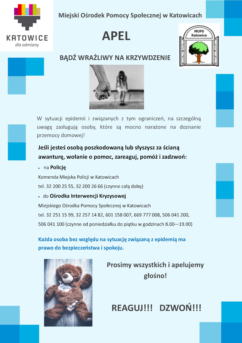 Katowicki MOPS apeluje – Doświadczasz przemocy bądź jesteś jej świadkiem? Zareaguj!