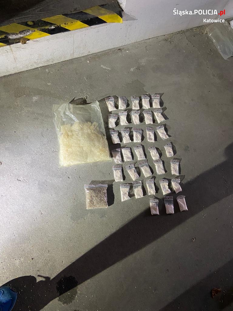 Mężczyzna został zatrzymany w Katowicach, kiedy jechał samochodem zeskradzionym towarem. Przewoził butle z gazem pochodzące z włamań na stacje benzynowe. Zatrzymany trafił do policyjnego aresztu. W trakcie przeszukania policjanci znaleźli ponad kilogram narkotyków, z których można przygotować prawie 1,7 tys. porcji dilerskich amfetaminy i blisko 900 tabletek ekstazy. Odzyskali również rzeczy pochodzące z innych włamań.