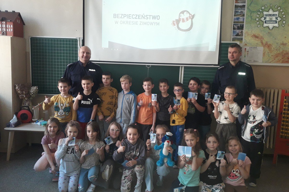 Dzielnicowi Komisariatu Policji V w Katowicach spotkali się z uczniami Szkoły Podstawowej nr 44, aby porozmawiać o bezpieczeństwie na stoku oraz zasadach obowiązujących podczas zbliżających się ferii zimowych. Policjanci przypomnieli również podstawowe reguły dotyczące bezpiecznego poruszania się po drodze.