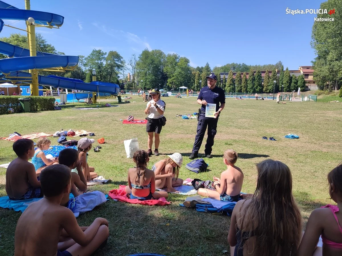 Podczas wakacji funkcjonariusze katowickiej komendy wraz z funkcjonariuszami Straży Miejskiej z Katowic we współpracy z Miejskim Ośrodkiem Sportu i Rekreacji w Katowicach oraz Ratownikami Wodnymi prowadzą działania profilaktyczne na miejskich kąpieliskach dotyczące bezpiecznego zachowania się podczas letniego wypoczynku nad wodą, w górach czy w mieście. Funkcjonariusze odwiedzili dwa Ośrodki Rekreacyjno – Wypoczynkowe „Bugla” i „Rolna” w Katowicach, gdzie ostrzegali wypoczywających nad wodą przed różnymi zagrożeniami oraz przekazali szereg cennych wskazówek dla dzieci, młodzieży, jak i dorosłych między innymi: jak uchronić się przed kradzieżą, zagubieniem dziecka w tłumie, jak należy się zachować podczas kontaktu z osobą nieznajomą, aby uniknąć porwania, jakie zasady panują na kąpielisku, do jakich znaków trzeba się stosować, aby uniknąć kalectwa czy utonięcia oraz co należy zrobić i do kogo należy zwrócić się o pomoc w sytuacji zagrożenia życia i zdrowia. Policjanci polecali również wzięcie udziału w konkursie KGP „Artystyczny PrzeWODNIK”, w którym można wykazać się znajomością bezpiecznych zasad na wodą lub w wodzie.
