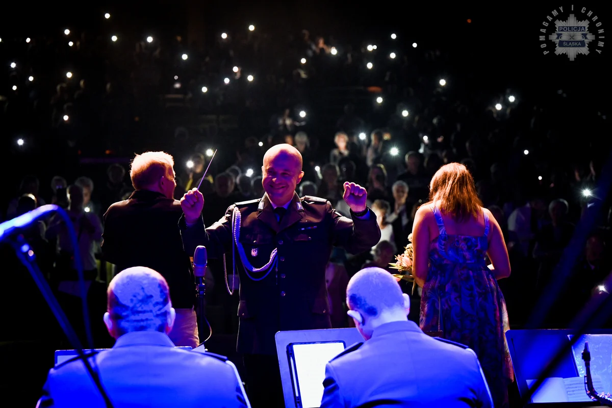 Po części edukacyjnej przyszedł czas na wyjątkowy koncert. Na scenie wystąpiła Orkiestra Komendy Wojewódzkiej Policji w Katowicach oraz znany artysta estradowy Mirosław Szołtysek. Występ wprowadził zgromadzonych w świąteczny nastrój i porwał publiczność do wspólnej zabawy.