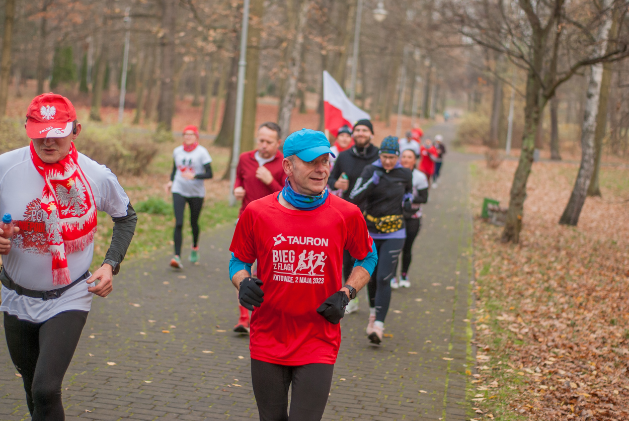 Około setka biegaczy, chodziarzy i zawodników nordic walking wzięło udział w patriotycznej, biało-czerwonej edycji spotkań parkrun Katowice. Wiele osób miało na sobie stroje lub elementy w naszych barwach narodowych.