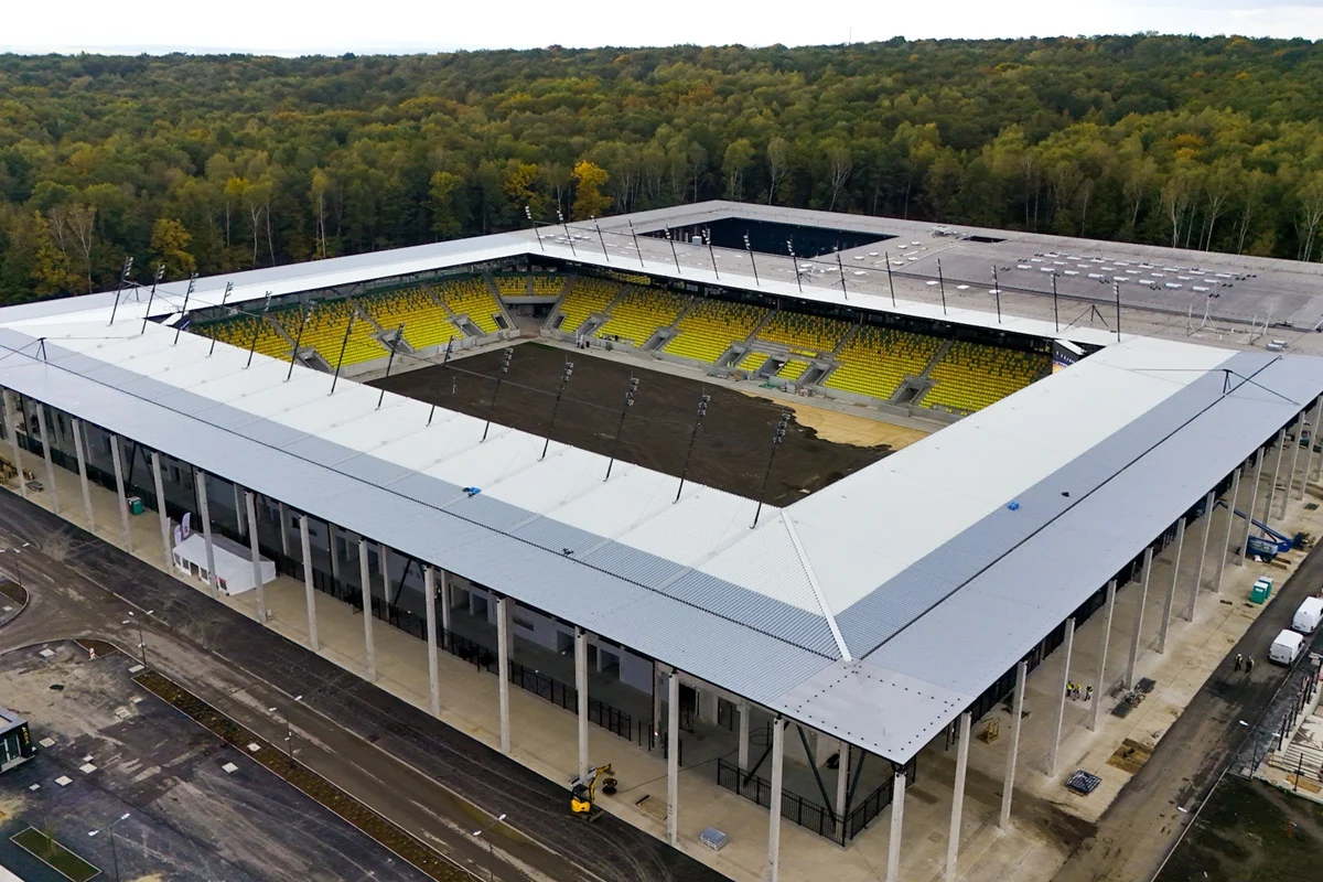 Stadion piłkarski o pojemności 15 tysięcy miejsc z nowoczesnymi trybunami i technologią LED