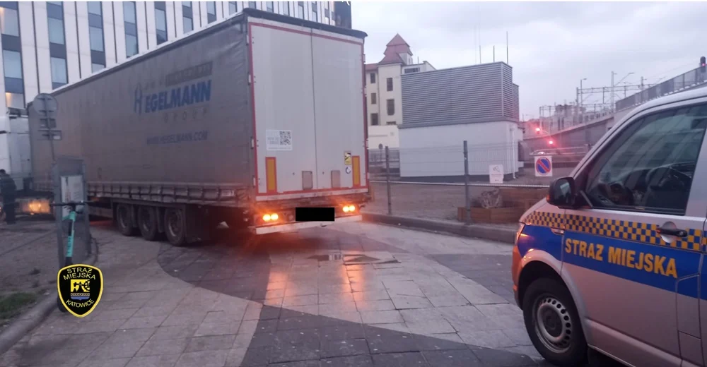 Ciągnik siodłowy z naczepą wjechał „pod prąd” na ul. Młyńską w Katowicach