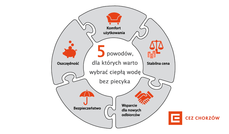 Korzystanie z ciepłej wody bez piecyka umożliwia mieszkańcom komfort użytkowania ciepłej wody o stałej temperaturze przez 365 dni w roku. Dodatkowo, urządzenia służące do podgrzania wody znajdują się w pomieszczeniach technicznych, dzięki czemu lokatorzy zyskują dodatkową przestrzeń do zagospodarowania i zwiększają estetykę mieszkania.
