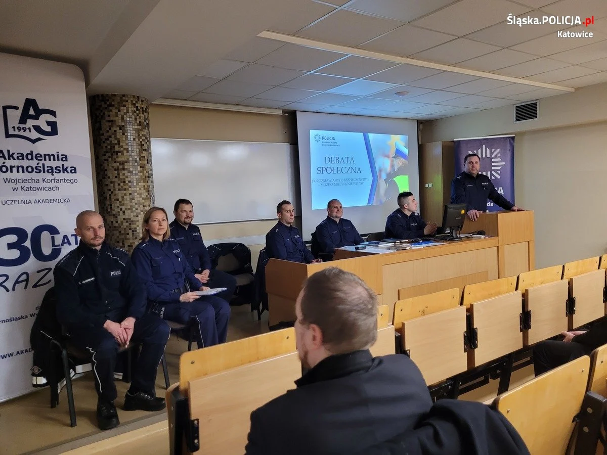 Policjanci z Komisariatu Policji IV w Katowicach kilka dni temu w Akademii Górnośląskiej w Katowicach przeprowadzili debatę z mieszkańcami Katowic pn.” Porozmawiajmy o bezpieczeństwie z mieszkańcami Piotrowic i Ochojca – możesz mieć na nie wpływ”. Spotkania z mieszkańcami mają na celu zacieśnianie współpracy Policji ze społecznością lokalną oraz stanowią najlepszą okazję do dyskusji oraz zgłaszania wniosków dotyczących bezpieczeństwa w miejscu zamieszkania oraz jego okolicy.