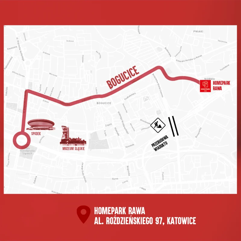 W związku z trwającym remontem wiaduktów nad trasą S86 w Katowicach (w ciągu ul. Bohaterów Monte Cassino), planowane zakończenie to grudzień 2025 roku. Przedstawiamy aktualne informacje dotyczące dojazdu do Homepark Rawa.