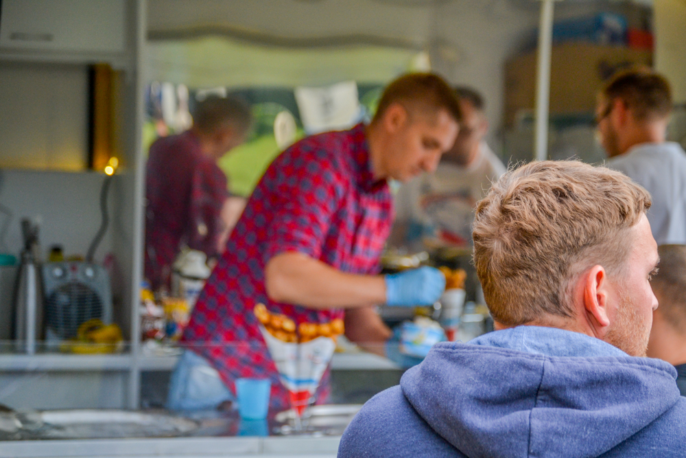 Na miejsce dotarliśmy dopiero w niedzielne popołudnie, wcześniej odstraszyła nas pogoda i obowiązki redakcyjne (sporo sie dzieje!) Zastaliśmy około 10 pojazdów i jakieś 30-40 osób, ale pogoda okazała się tak kapryśna, że nie ma się czemu dziwić. Sobota była ponoć dość tłumna, a przynajmniej tak mówili nam pracownicy kilku gastrowozów, których pytaliśmy o poprzedni dzień.