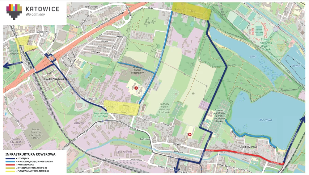 Ukończony właśnie etap inwestycji to nowa infrastruktura dla rowerzystów biegnąca od ulicy Stacyjnej, przez Pogodną i Hallera, gdzie następnie łączy się ze strefą „Tempo 30” obejmującą ulice Wandy, Siewną oraz częściowo ulicę Korczaka. Dzięki niej miłośnicy jednośladów zyskali ponad 1200 metrów drogi oddzielonej od ruchu pieszych i samochodów. Jedynie na krótkim odcinku (w rejonie skrzyżowania z ul. Kuśnierską), ze względu na uwarunkowania terenowe, jest to odcinek pieszo-rowerowy.