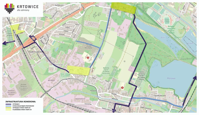Jeszcze w tym kwartale zostanie ogłoszony przetarg na budowę kolejnej drogi rowerowej w Szopienicach-Burowcu. Będzie ona poprowadzona wzdłuż ul. Morawa od rejonu skrzyżowania z ul. Brynicy do ul. Sosnowieckiej, gdzie zakończy się na wysokości budynku stanicy wodnej 10. Harcerskiej Drużyny Żeglarskiej. Tym samym inwestycja wypełni lukę pomiędzy trasami biegnącymi wzdłuż ul. Brynicy oraz wzdłuż ul. Sosnowieckiej. Jej realizacja ma potrwać 12 miesięcy. Trasą wzdłuż ul. Brynicy można dojechać m.in. do drogi, której realizacja właśnie się kończy. Chodzi o 850-metrowy odcinek na ul. Korczaka. To inwestycja o wartości 2,56 mln zł, stanowiąca II etap połączenia rowerowego Doliny 5 Stawów z ul. Techników i al. Niepodległości. Dla tego etapu inwestycji rozpoczęła się procedura odbiorowa. Natomiast pierwsza część zadania, czyli droga rowerowa w rejonie ul. Hallera została oddana do użytku w marcu br.