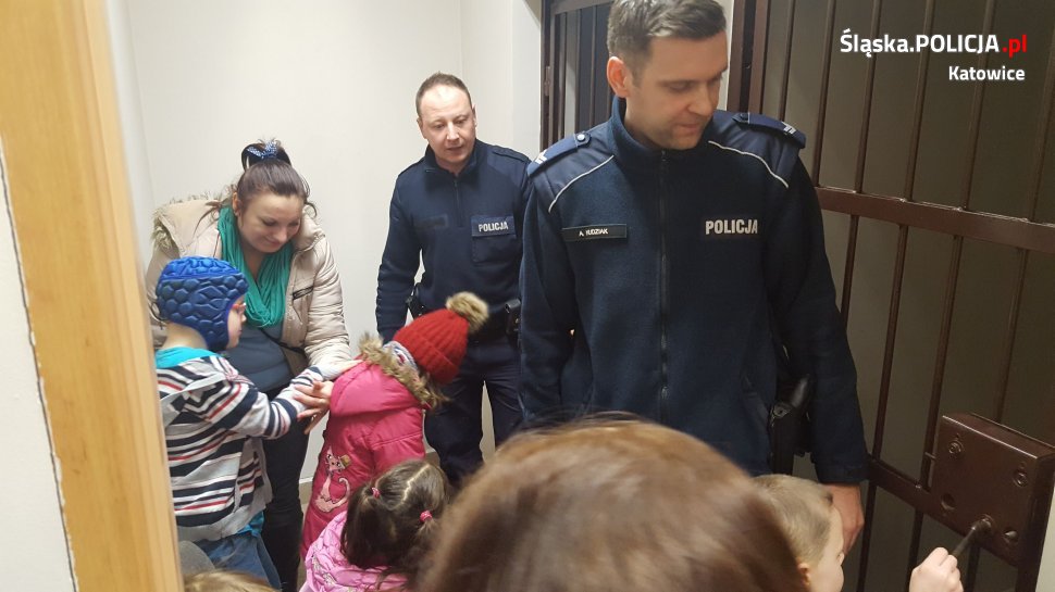 Dzielnicowi z KomisariatuPolicji IV w Katowicach odpowiedzieli na prośbę przedszkolaków i zorganizowali dzieciom z Terapeutycznego Punktu Przedszkolnego „Kraina Marzeń”, krótką wycieczkę po zakamarkach komisariatu. Dzieci odwiedziły m.in. dyżurkę, szatnię, celę oraz pokój funkcjonariuszy, na co dzień pracującymi z nieletnimi mieszkańcami naszego miasta. St. sierż. Adam Hudzik wraz z mł. asp. Rafałem Płatek pokazali dzieciom jak korzystać z radia policyjnego oraz jak wygląda radiowóz od środka. Dzięki wizycie sierż. Klaudii Jaskólskiej z Komendy Miejskiej Policji w Katowicach, przedszkolaki wysłuchały najważniejszych zasad bezpiecznego poruszania się po drodze. Zwieńczeniem dnia była nauka poprawnego przechodzenia na drugą stronę ulicy pod czujnym okiem stróżów prawa oraz drobny upominek w postaci elementów odblaskowych.