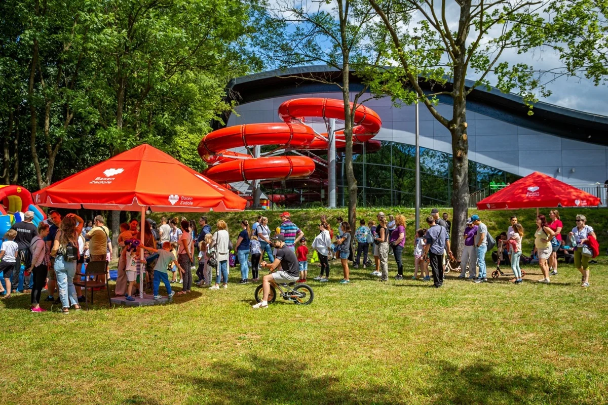 Jedną z głównych atrakcji był wodny tor przeszkód, który dostarczył dzieciom mnóstwo radości i ekscytacji. W strefie otwartejmożna było znaleźć również tor przeszkód na trawie animowany przez Decathlon, który sprawdził zwinność młodych uczestników. Te konkurencje były idealne dla tych, którzy lubią wyzwania i ruch na świeżym powietrzu. Na terenie basenu zorganizowano różnorodne gry i zabawy, które były dostępne dla dzieci w każdym wieku. Od tradycyjnych gier podwórkowych, po nowoczesne zabawy interaktywne – każdy mógł znaleźć coś dla siebie. Dmuchane zjeżdżalnie cieszyły się ogromnym zainteresowaniem, oferując dzieciom niekończącą się zabawę i śmiech.