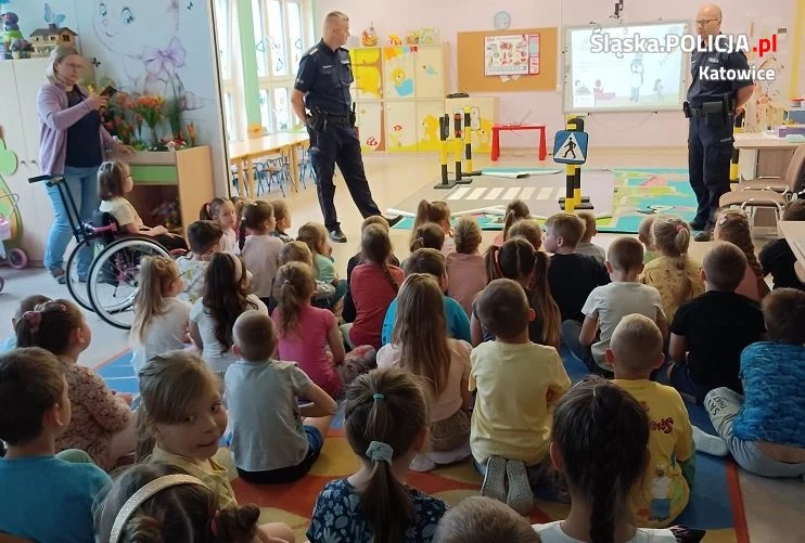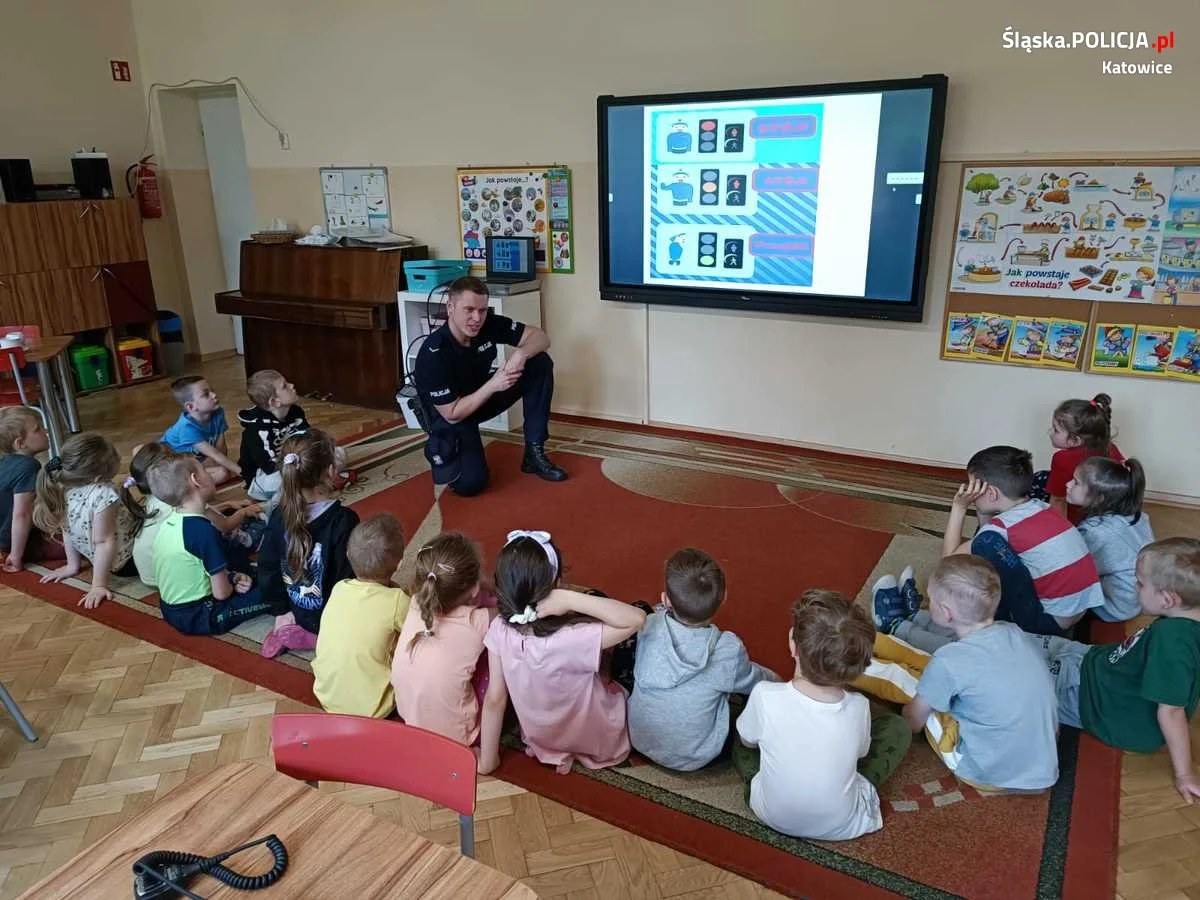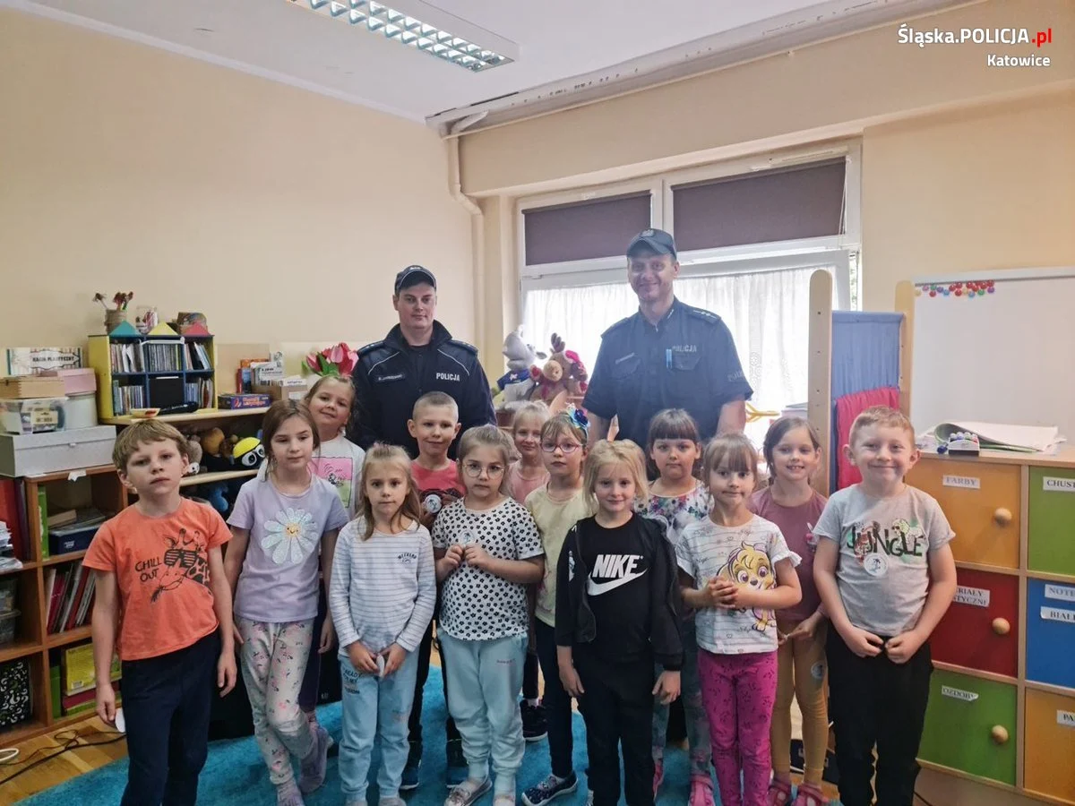 Dzielnicowi o bezpieczeństwie podczas wakacji z katowickimi przedszkolakami