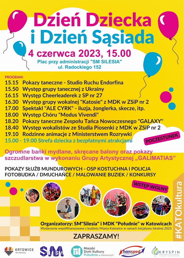 Impreza z okazji Dnia Dziecka na Placu Św. Herberta na Osiedlu Witosa organizowana jest przez Miejski Dom Kultury Koszutka. Impreza plenerowa będzie się odbywać od godziny 16:00 do 20:00.