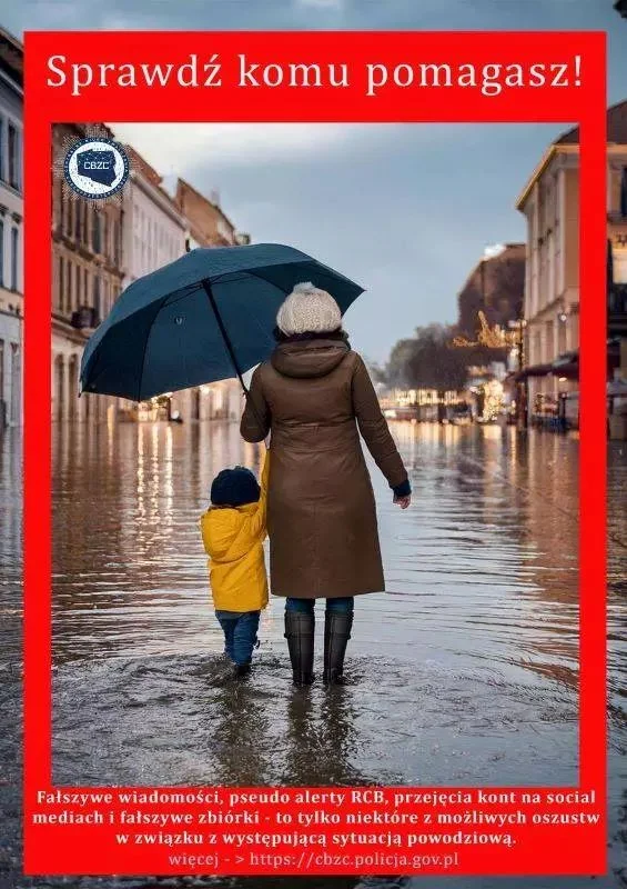 Wzwiązku z pojawiającymi się informacjami o fałszywych zbiórkach, dotyczących pomocy powodzianom, apelujemy o szczególną ostrożność. Oszuści coraz częściej wykorzystują dramatyczne wydarzenia, aby wyłudzać pieniądze pod pozorem działań charytatywnych.