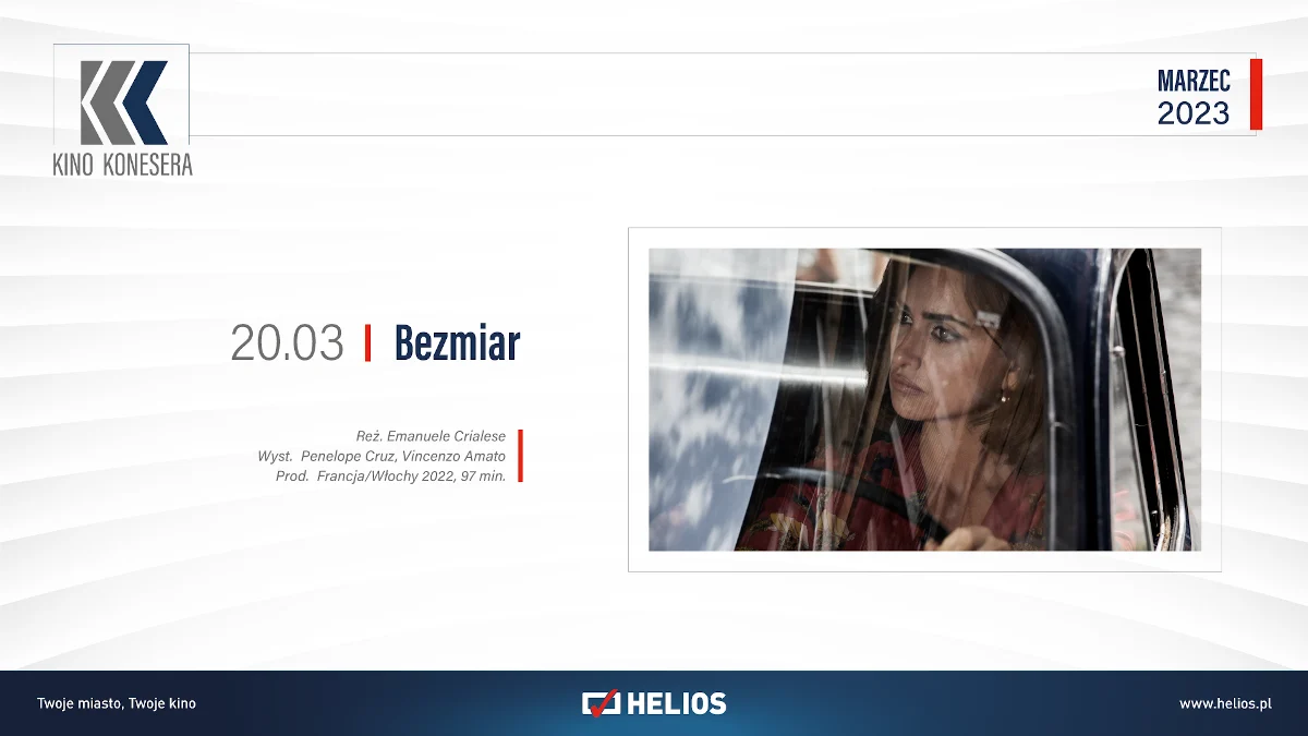 Miłośnicy cyklu Kino Konesera będą mogli wybrać się na dramat „Bezmiar”. 20 marca widzowie przeniosą się do Rzymu w latach siedemdziesiątych XX wieku, do czasów ważnych zmian społecznych i kulturalnych. Rodzina Borghetti właśnie wprowadziła się do jednego z nowo wybudowanych bloków. Przeprowadzka ma wymiar słodko-gorzki. Chociaż rozpościerający się z najwyższego piętra widok na Rzym jest olśniewający, członkowie rodziny nie są sobie tak bliscy jak kiedyś…
