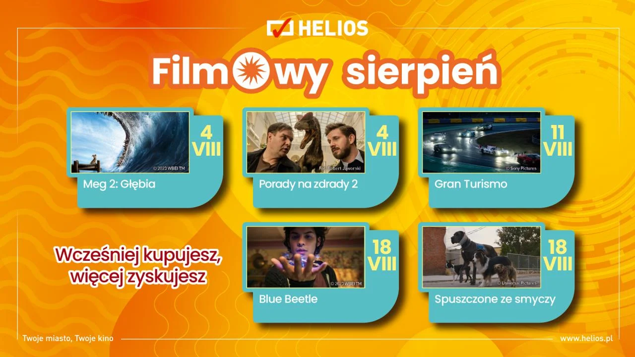 Szczegóły dotyczące wszystkich pokazów dostępnych w aktualnym repertuarze oraz bilety dostępne są na stronie www.helios.pl, w aplikacji mobilnej, a także w kasach kinowych sieci w całej Polsce. Przy okazji wakacyjnych seansów sieć zachęca widzów również do wzięcia udziału w konkursie „Filmowe lato z nagrodami”. Aby zawalczyć o nagrody, należy wypełnić zgłoszenie konkursowe znajdujące się na stronie www.helios.pl/lato. Akcja trwa do końca sierpnia tego roku.
