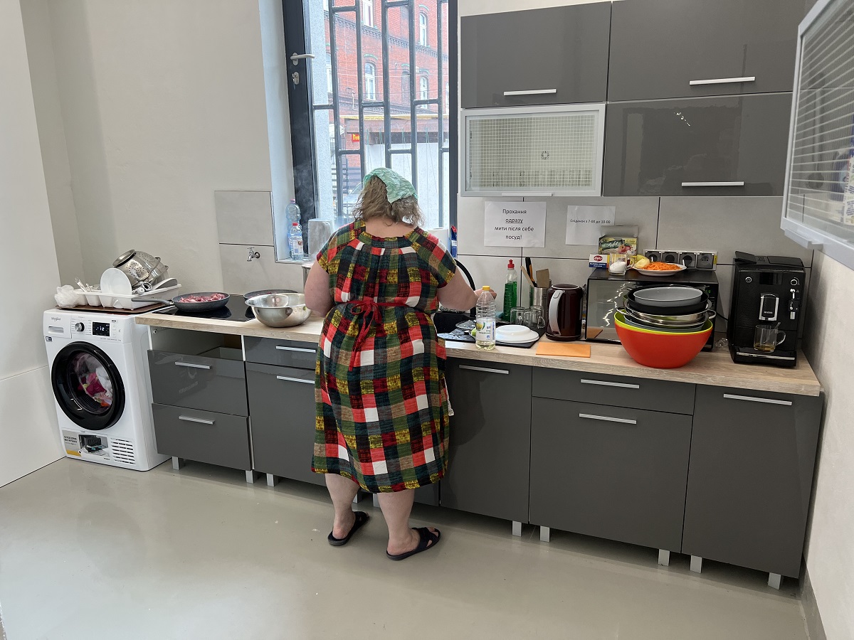 Uruchomione zostały trzy węzły sanitarne (toalety i prysznice). Przestrzeń sklepu podzielono na 2 strefy: wypoczynkową i aktywną. W części wypoczynkowej stanęło 70 łóżek – oddzielonych przegrodami, które zapewniają intymność. Stworzono też specjalne miejsce dla osób źle się czujących lub chorych. W części aktywnej powstała strefa do przygotowywania i spożywania posiłków. Produkty żywnościowe pochodzą z hurtowni i sklepów sąsiadujących ze Ski Team. Na miejscu zagwarantowano możliwość prania i suszenia odzieży. Pomyślano też o najmłodszych – dzięki zbiórce zorganizowanej przez Ski Team zapewniono łóżeczka. Dla nieco starszych dzieci przygotowano plac zabaw i ekran do oglądania filmów.