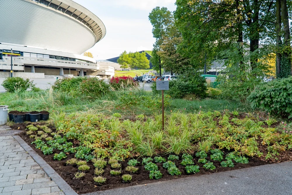 Łącznie teren, na którym zasadzone zostały nowe rośliny ma ok. 26 m2. Znajduje się naprzeciw biurowców. KTW, od strony ronda Jerzego Ziętka i Spodka. Wśród roślin, które się w tym miejscu pojawiły, można wymienić 24 szt. Różnego rodzaju odmian paproci oraz 37 szt. trzcinnika krótkowłosego, który jest bardzo atrakcyjną, ozdobną trawą o ciemnozielonych liściach. Najwięcej, bo 60 szt., posadzono tawułki „Red Skyscraper”, która charakteryzuje się okazałymi, purpurowo-różowymi kwiatami i błyszczącymi liśćmi.