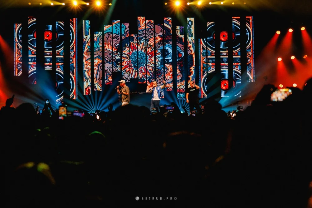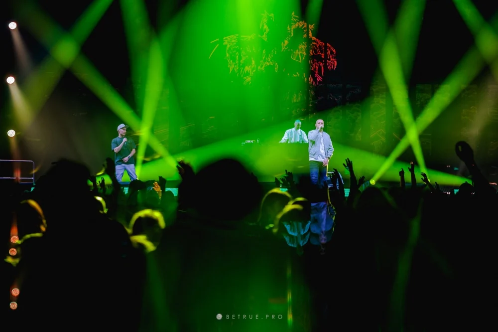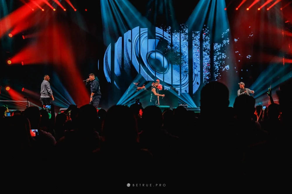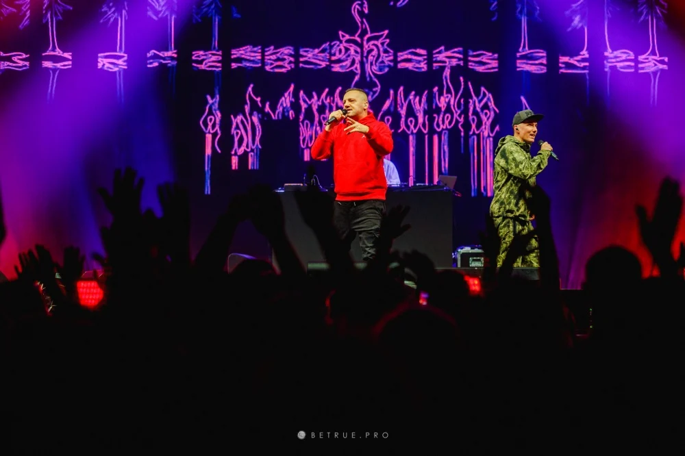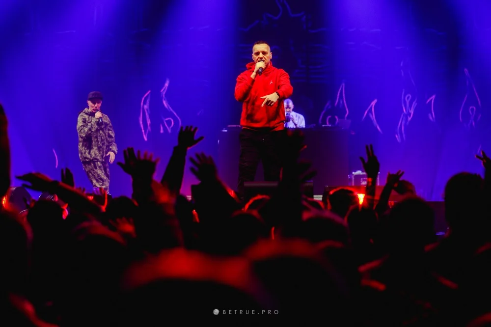 Na scenie pojawili się artyści, którzy byli częścią tej historii: Grubson, Gutek, Abradab, donGURALesko, Śliwka Tuitam, Kleszcz, Zbuku, 21NADOBE oraz Sot. Ich wejścia były logicznie osadzone w secie i wzmacniały energię na hali. Publiczność reagowała od pierwszych numerów – wspólne refreny i pełna hala były stałym elementem koncertu. Całość wspierały światło i wizualizacje podporządkowane narracji występu.