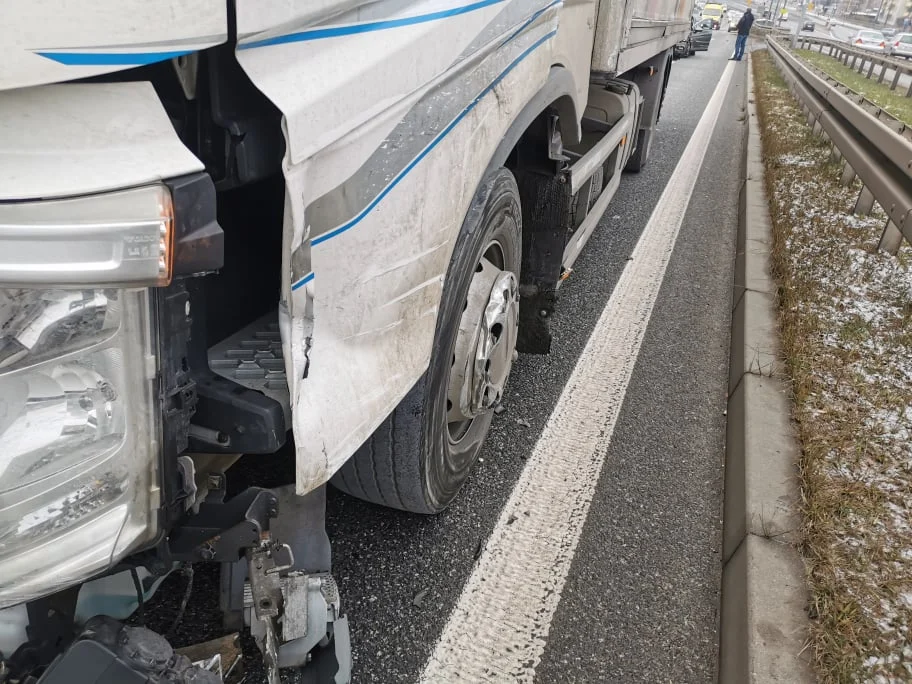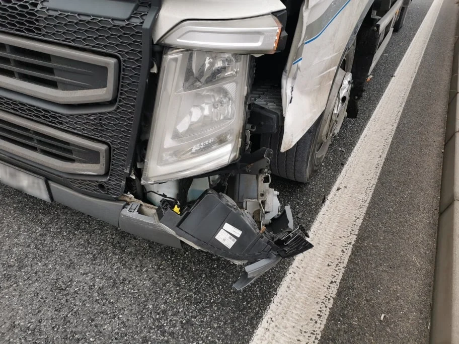 [Foto] Groźna kolizja na DTŚ. Samochód osobowy zderzył się z ciężarówką