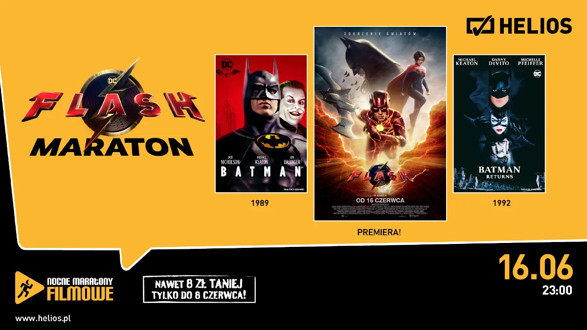 Ponadto, w najbliższy piątek odbędzie się również Nocny Maraton Filmowy FLASH. Poza najnowszą produkcją „Flash”, fani superbohaterów zobaczą także klasyczne filmy w reżyserii Tima Burtona: „Batman” z 1989 roku oraz „Powrót Batmana”z 1992 roku. Szykują się wielkie filmowe emocje!