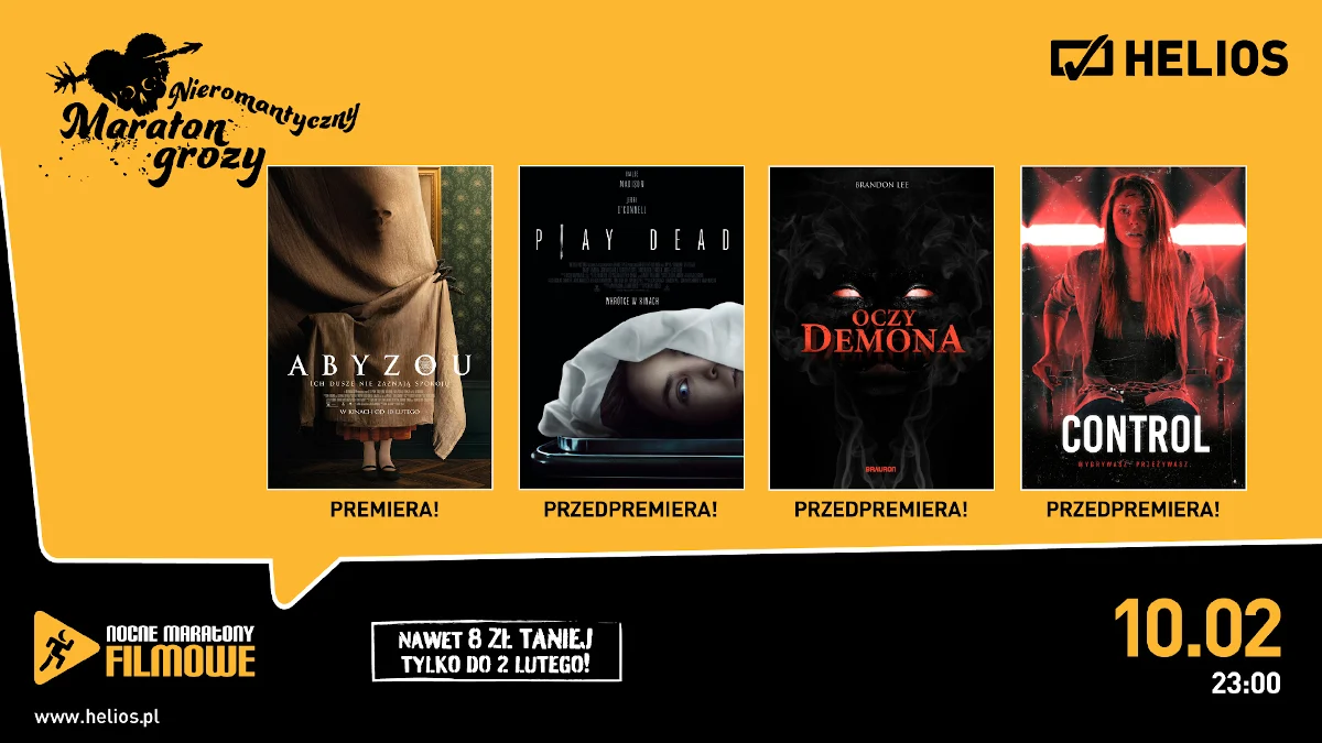 W tym roku Helios przygotował także filmową alternatywę dla romantycznychkolacji, pięknych bukietów i słodkich czekoladek. Wszyscy, którzy zechcą świętować Walentynki nieco inaczej powinni skusić się na Nieromantyczny Maraton Grozy. W piątek, 10 lutego cykl NMF zaprezentuje na pokazach w całej Polsce naszpikowany nowościami wieczór filmowy z aż czterema przerażającymi horrorami!