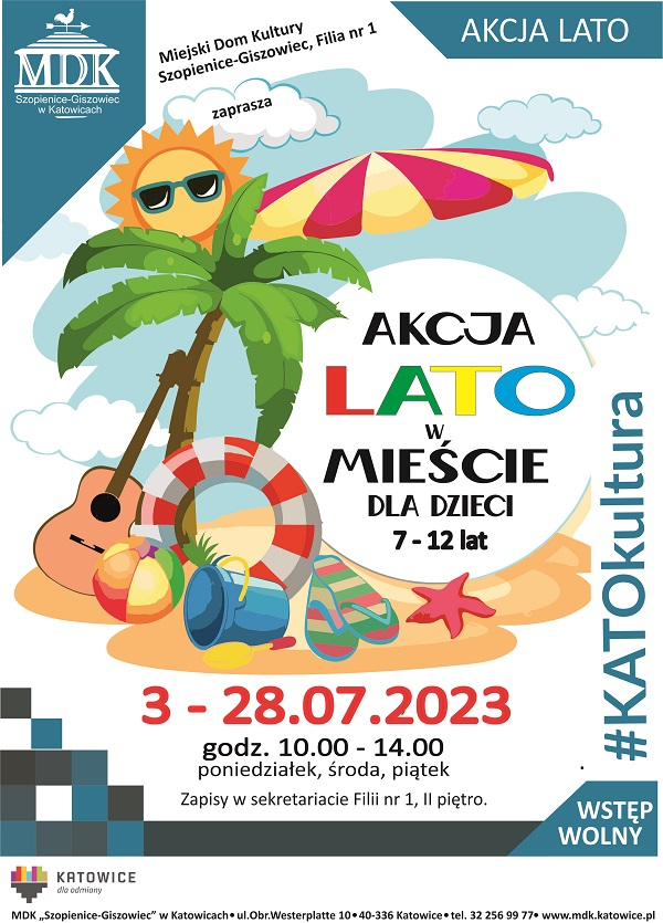 Filia nr 1 MDK w Szopienicach zaprasza wszystkie dzieci w wieku 7-12 lat na zajęcia organizowane w ramach akcji „Lato w mieście 2023”. Tym razem pod hasłem „Jak to downij na Śląsku było” w każdy poniedziałek, środę i piątek lipca w godzinach 10.00-14.00 odbędą się ciekawe zajecia. Obowiązują zapisy w sekretariacie Filii nr 1 MDK. Ilość miejsc ograniczona.