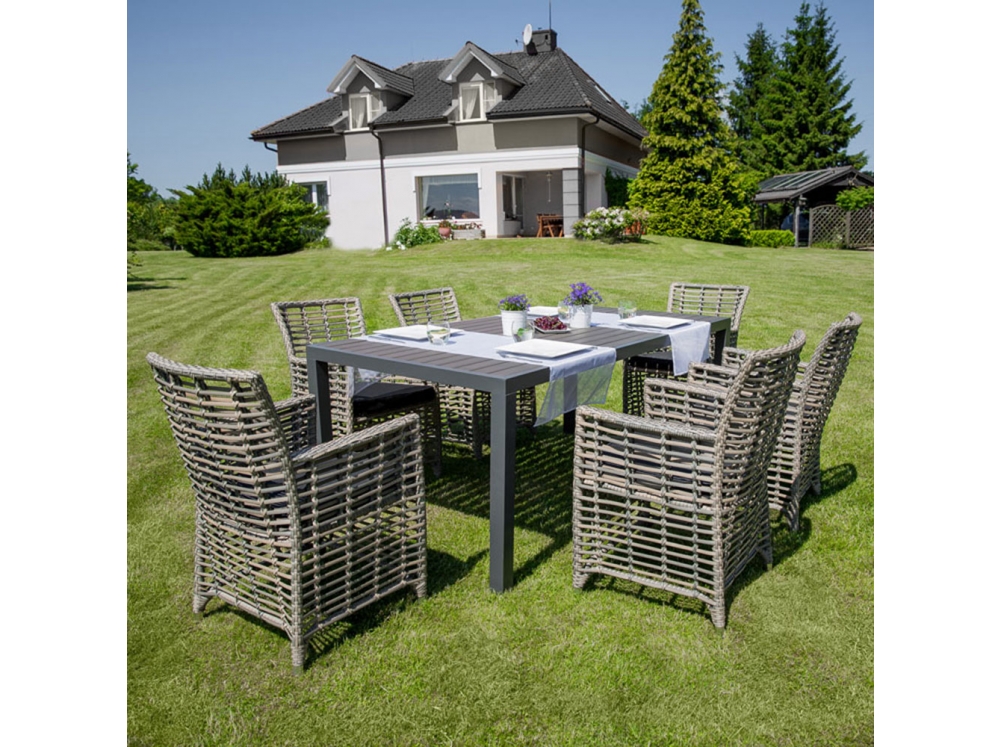 Na początku pochylmy się nad tworzywem wykorzystanym w produkcji danych mebli. Tym łączącym ze sobą powszechność występowania z łatwością pielęgnacji jest technorattan, który prócz tego radzi sobie ze skrajnie różnymi warunkami pogodowymi, począwszy od deszczu, przez śnieg, a na intensywnym słońcu, kończąc. Ponadto zadbano o jego odporność na wilgoć, co przyda się, gdy będziemy chcieli umieścić meble koło basenu. Czyszczenie ograniczy się do kilku ruchów mokrą ścierką.