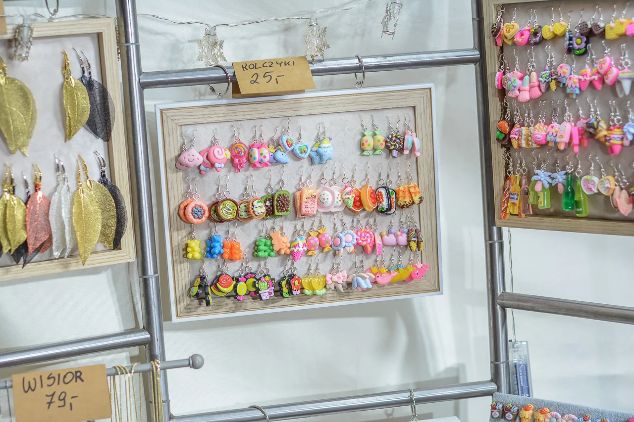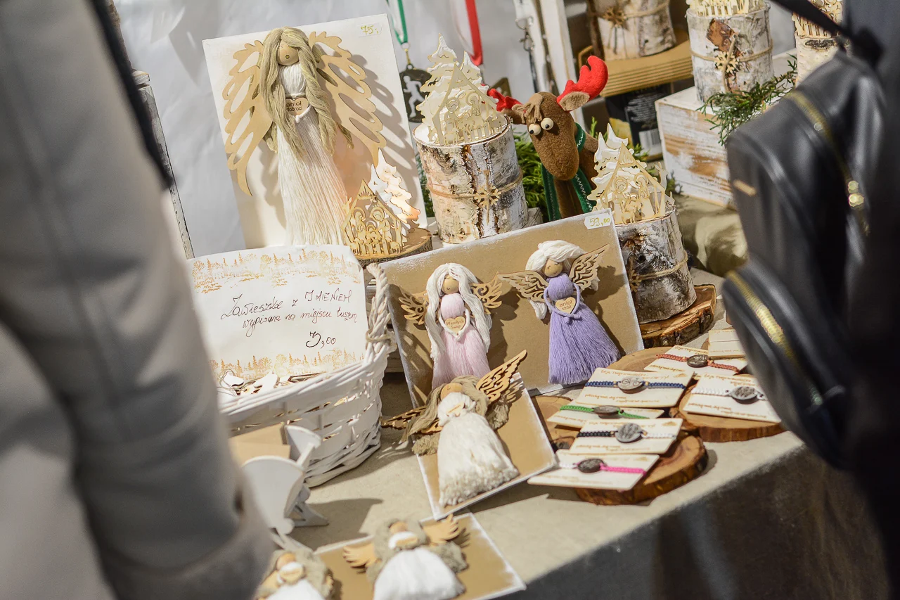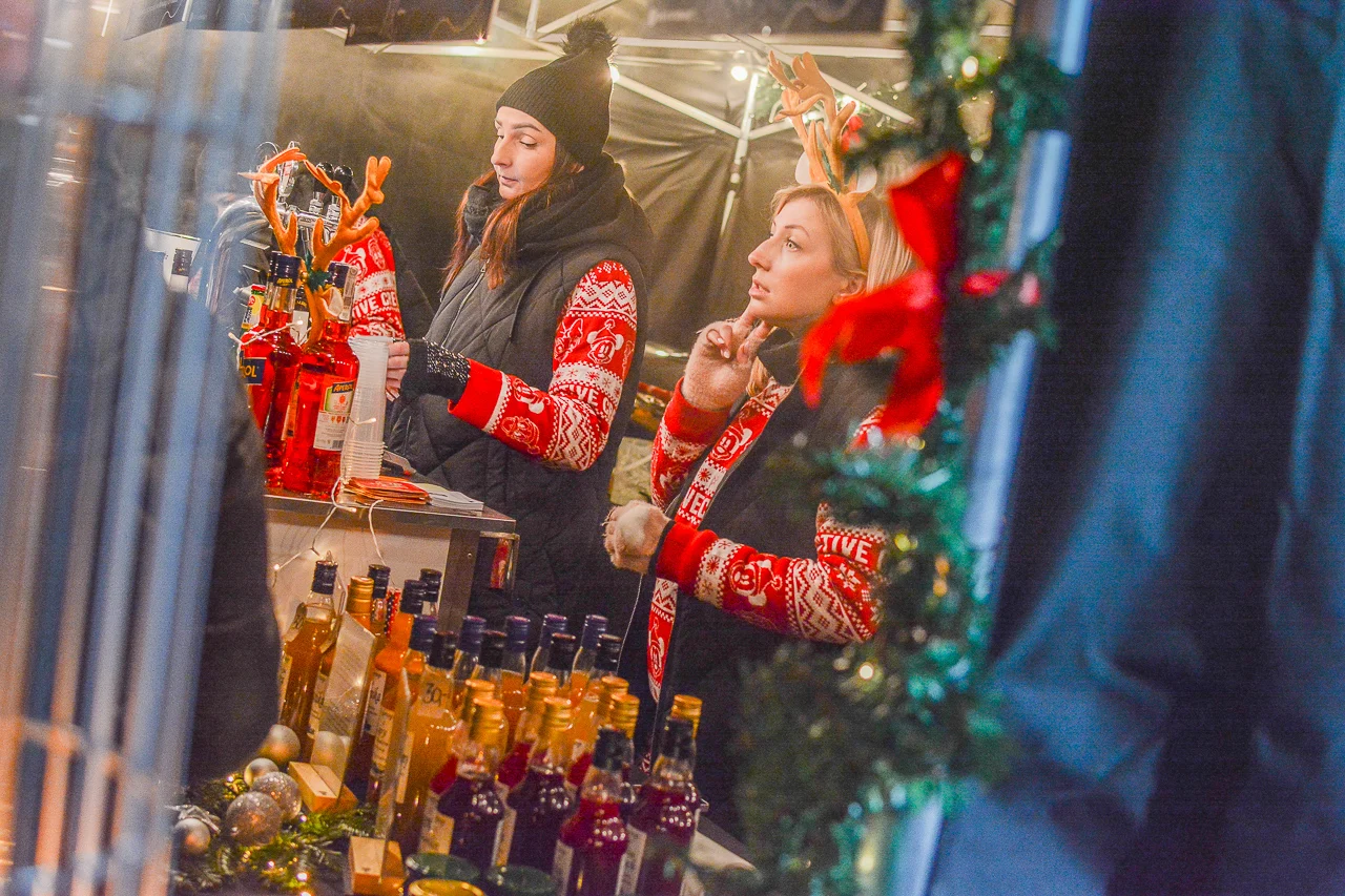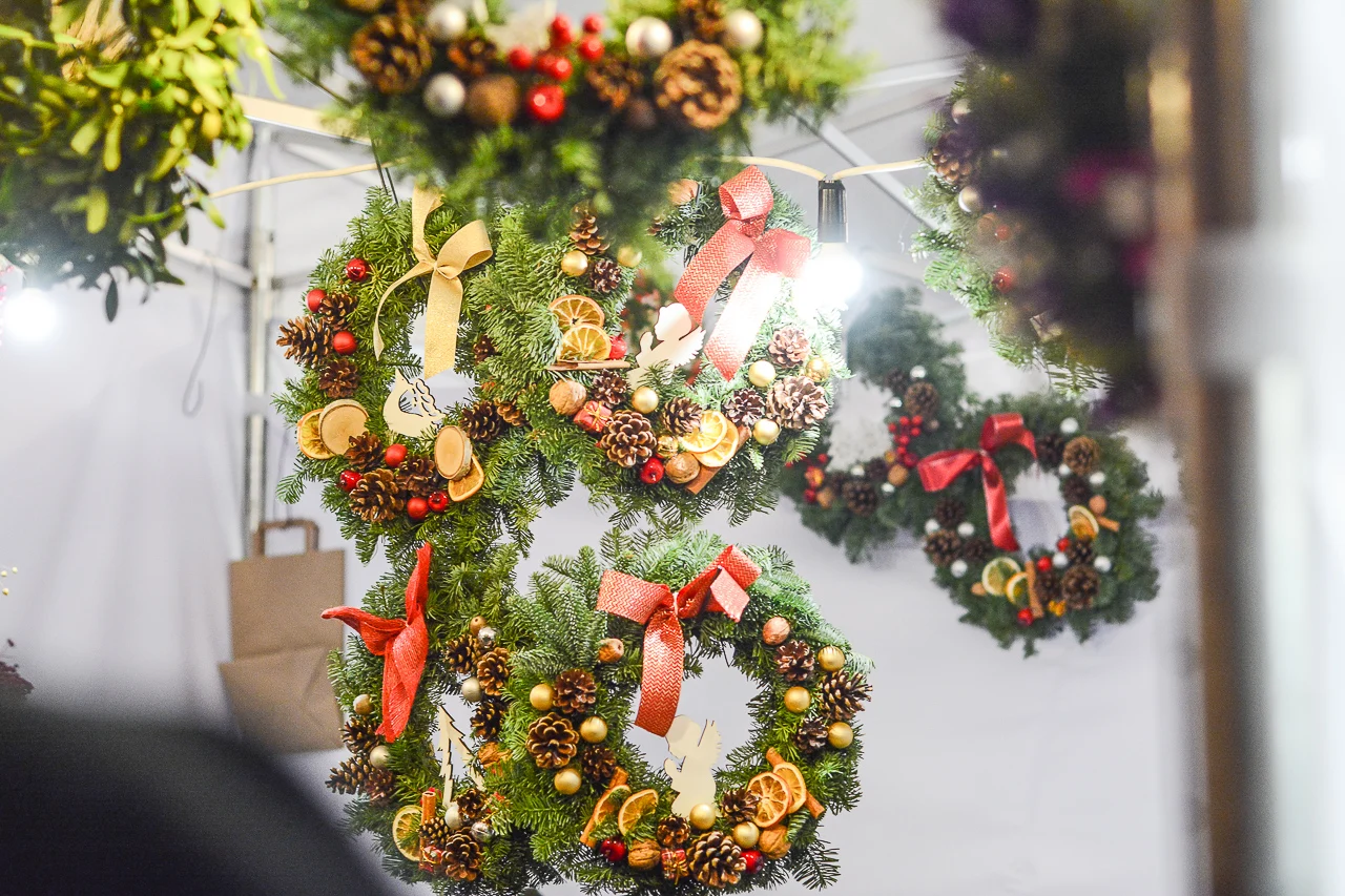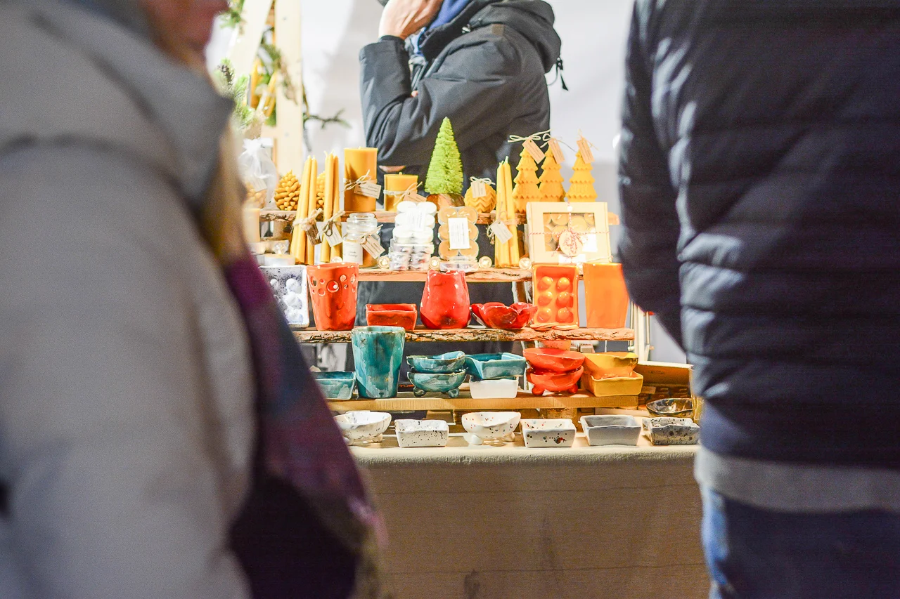 Samych stoisk również było bardzo dużo – od gastronomii (tu wydzielono częściowo osobną strefę), przez przyprawy, słodycze i sery, rękodzieło, obrazy, aż po odpustowe bibeloty (choć tych było, na szczęście, najmniej). Do tego karuzela, miejsca do sesji zdjęciowych, i podświetlane ozdoby świąteczne. Było kolorowo, głośno, a świąteczna muzyka mieszała się z gwarem rozmów i smakowitymi zapachami.