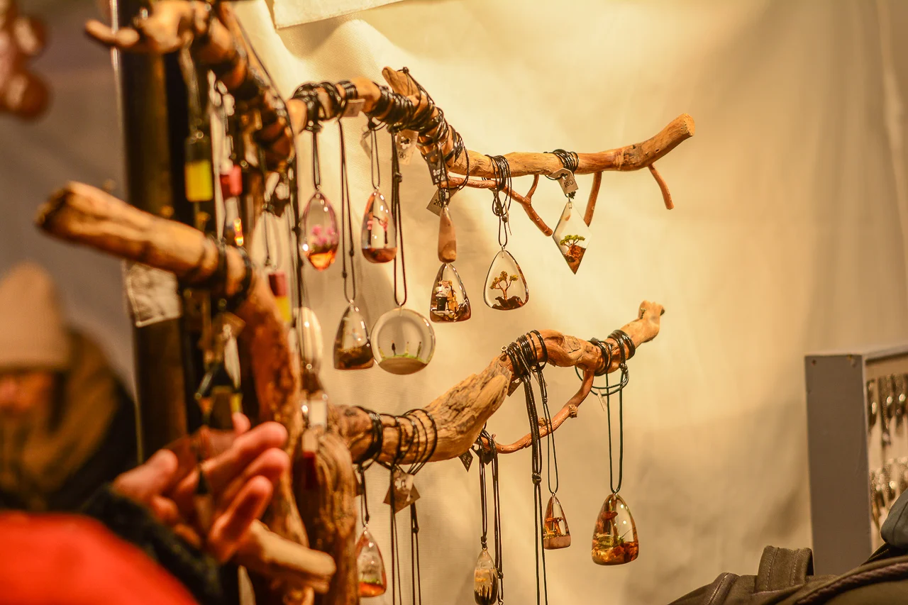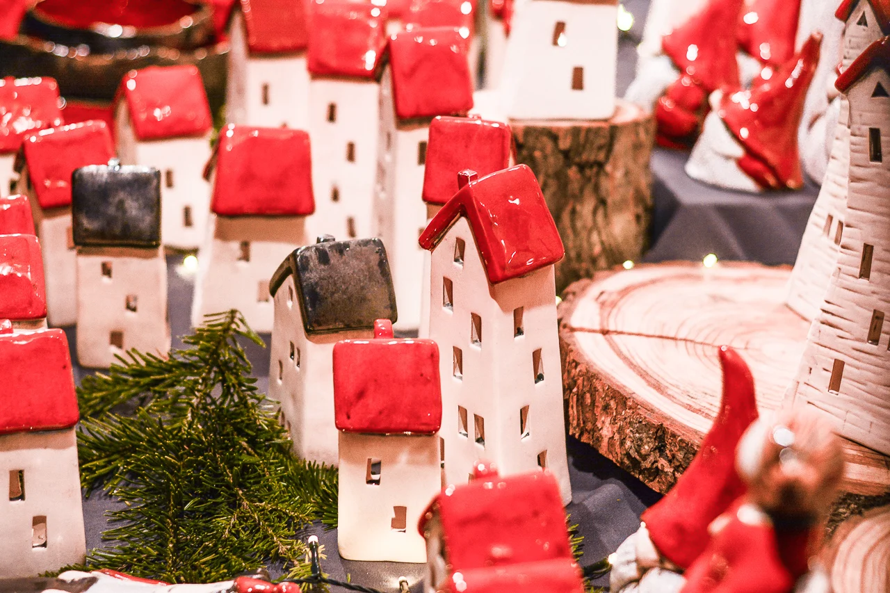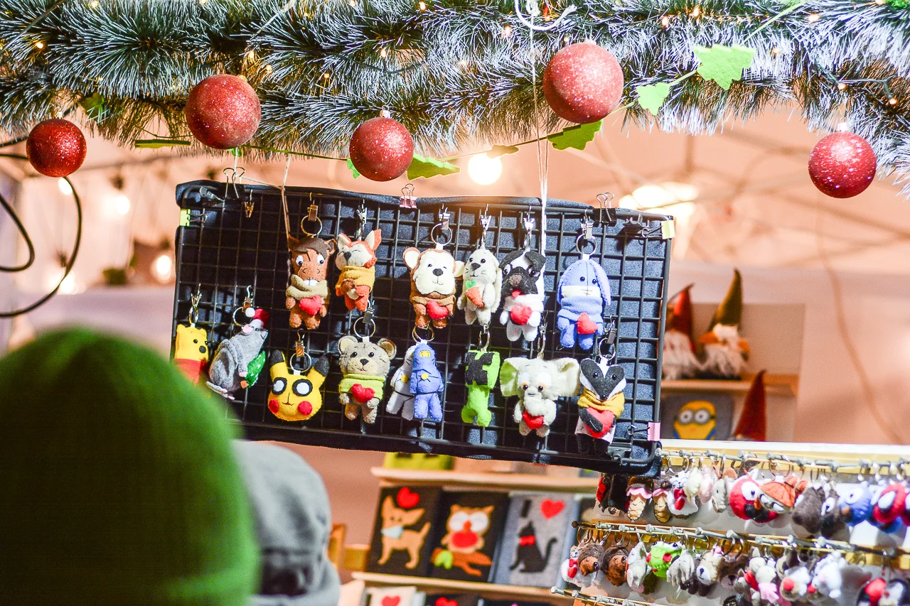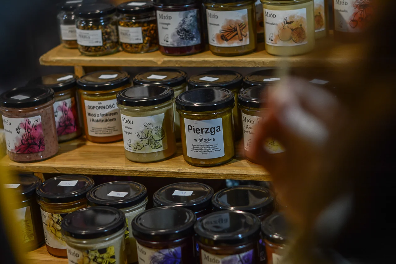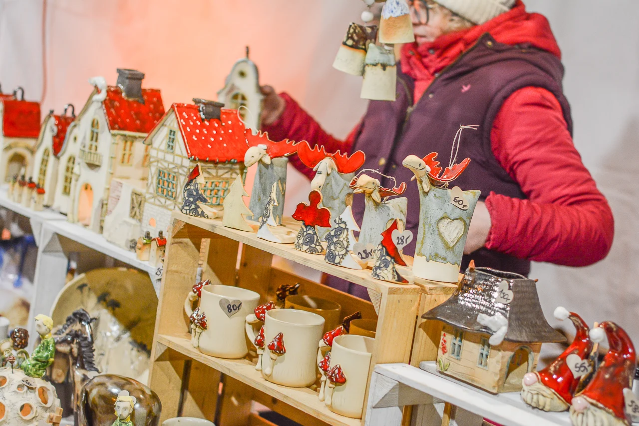 Samych stoisk również było bardzo dużo – od gastronomii (tu wydzielono częściowo osobną strefę), przez przyprawy, słodycze i sery, rękodzieło, obrazy, aż po odpustowe bibeloty (choć tych było, na szczęście, najmniej). Do tego karuzela, miejsca do sesji zdjęciowych, i podświetlane ozdoby świąteczne. Było kolorowo, głośno, a świąteczna muzyka mieszała się z gwarem rozmów i smakowitymi zapachami.