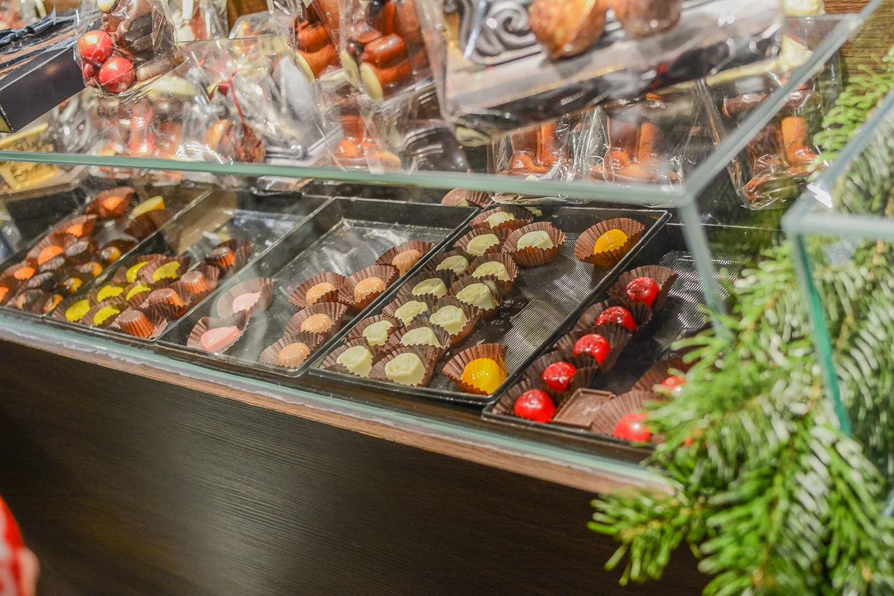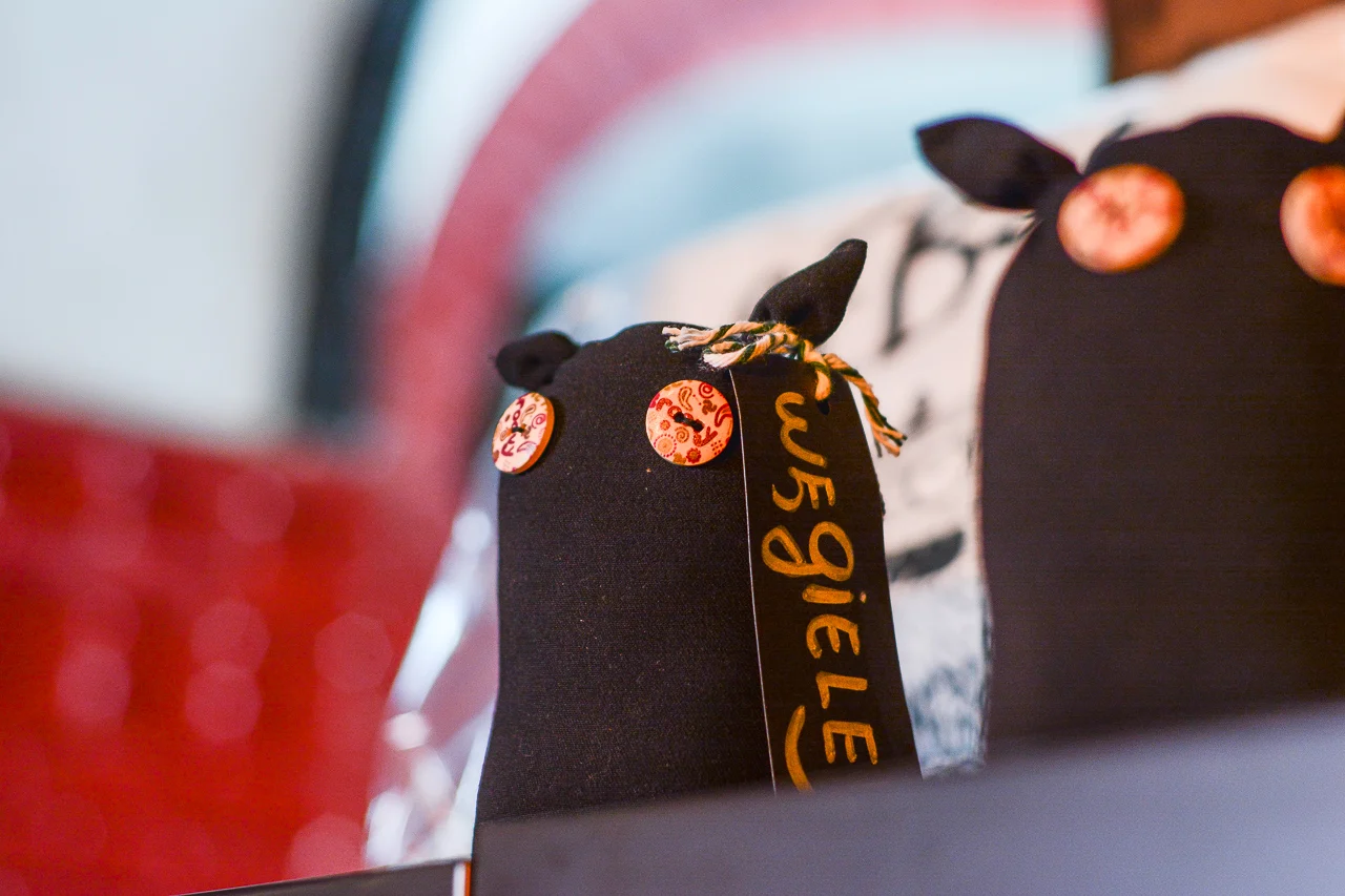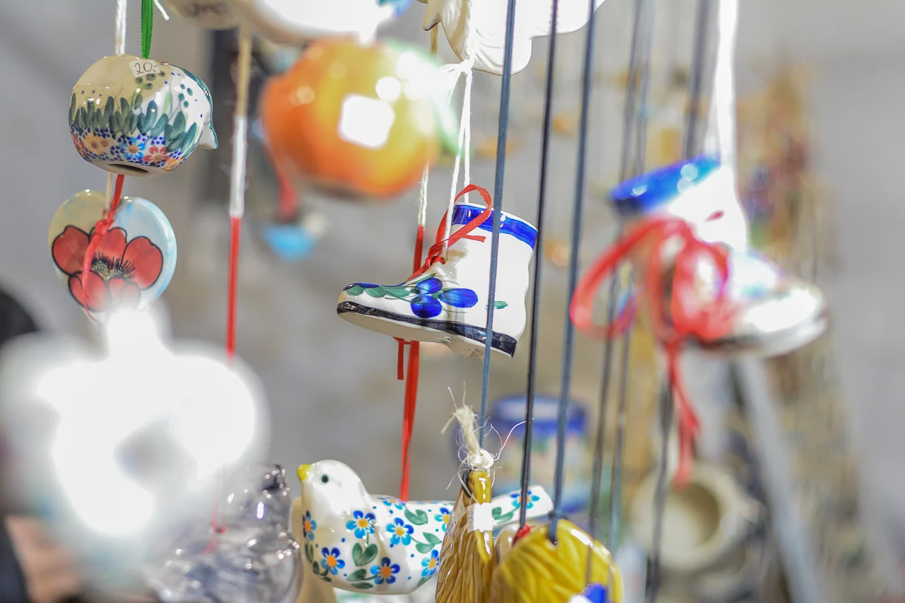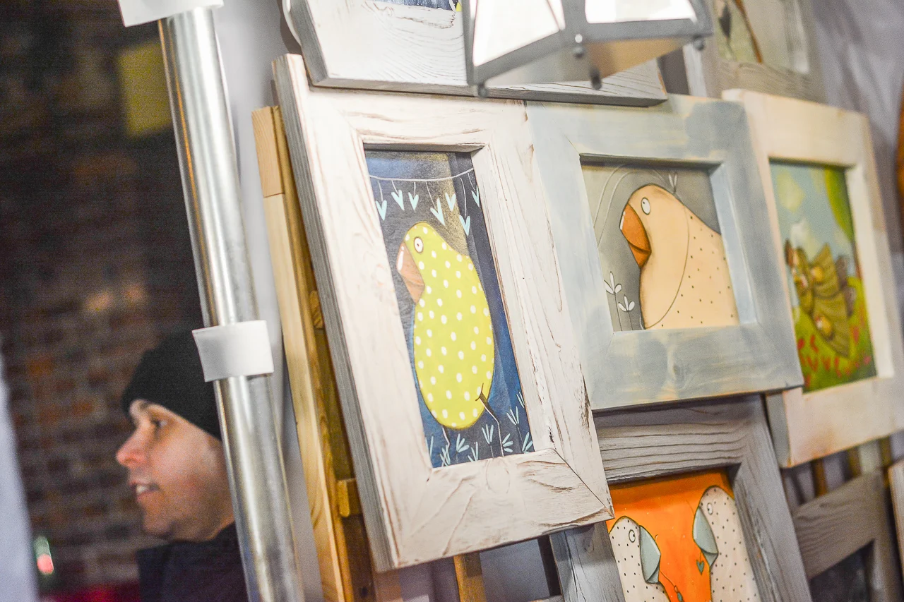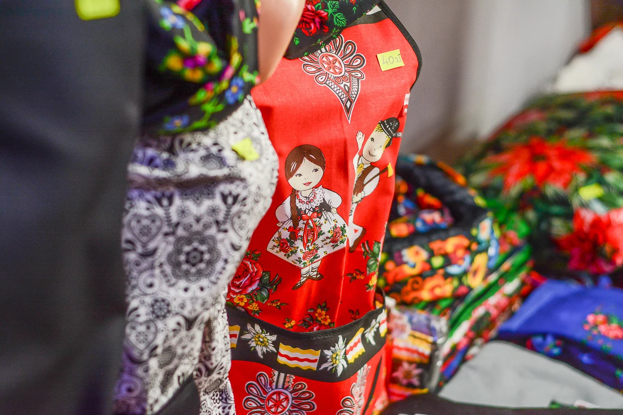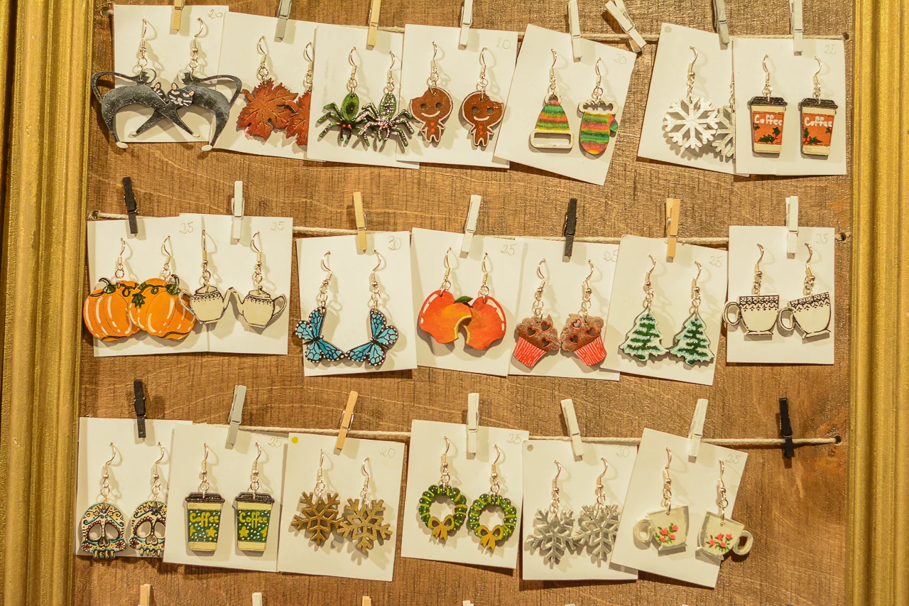 Samych stoisk również było bardzo dużo – od gastronomii (tu wydzielono częściowo osobną strefę), przez przyprawy, słodycze i sery, rękodzieło, obrazy, aż po odpustowe bibeloty (choć tych było, na szczęście, najmniej). Do tego karuzela, miejsca do sesji zdjęciowych, i podświetlane ozdoby świąteczne. Było kolorowo, głośno, a świąteczna muzyka mieszała się z gwarem rozmów i smakowitymi zapachami.