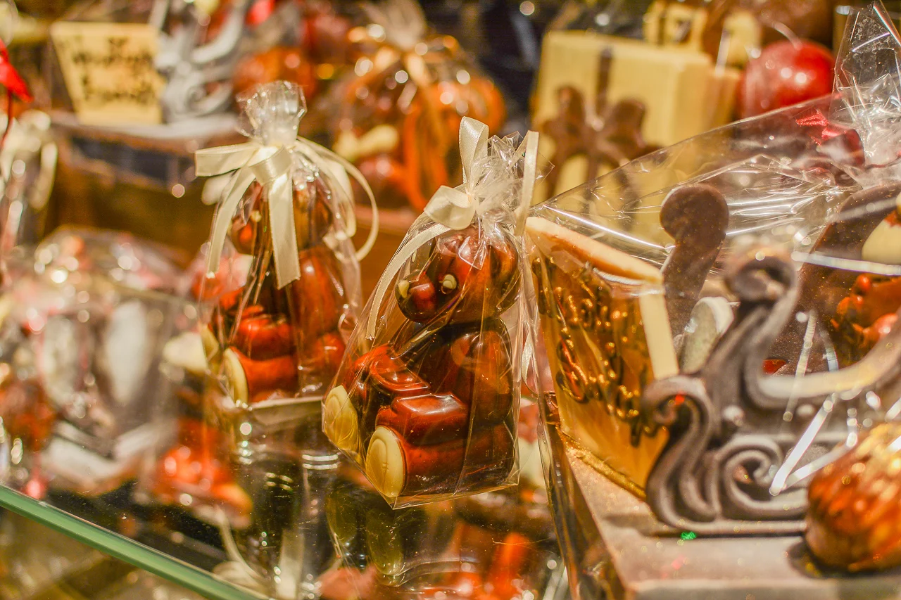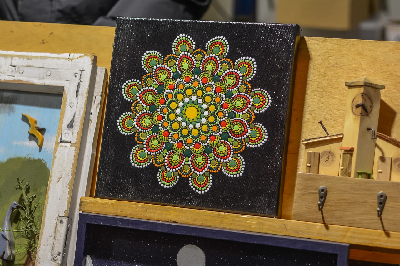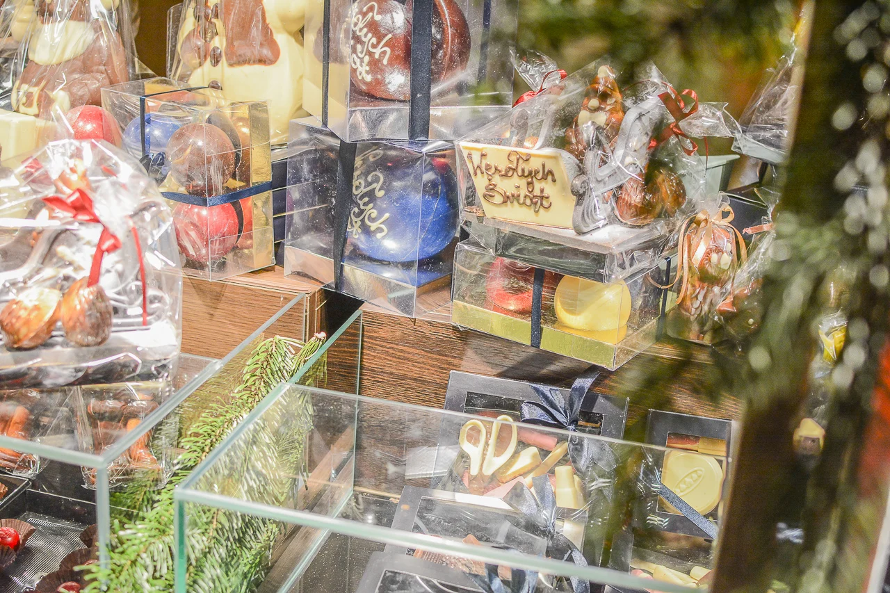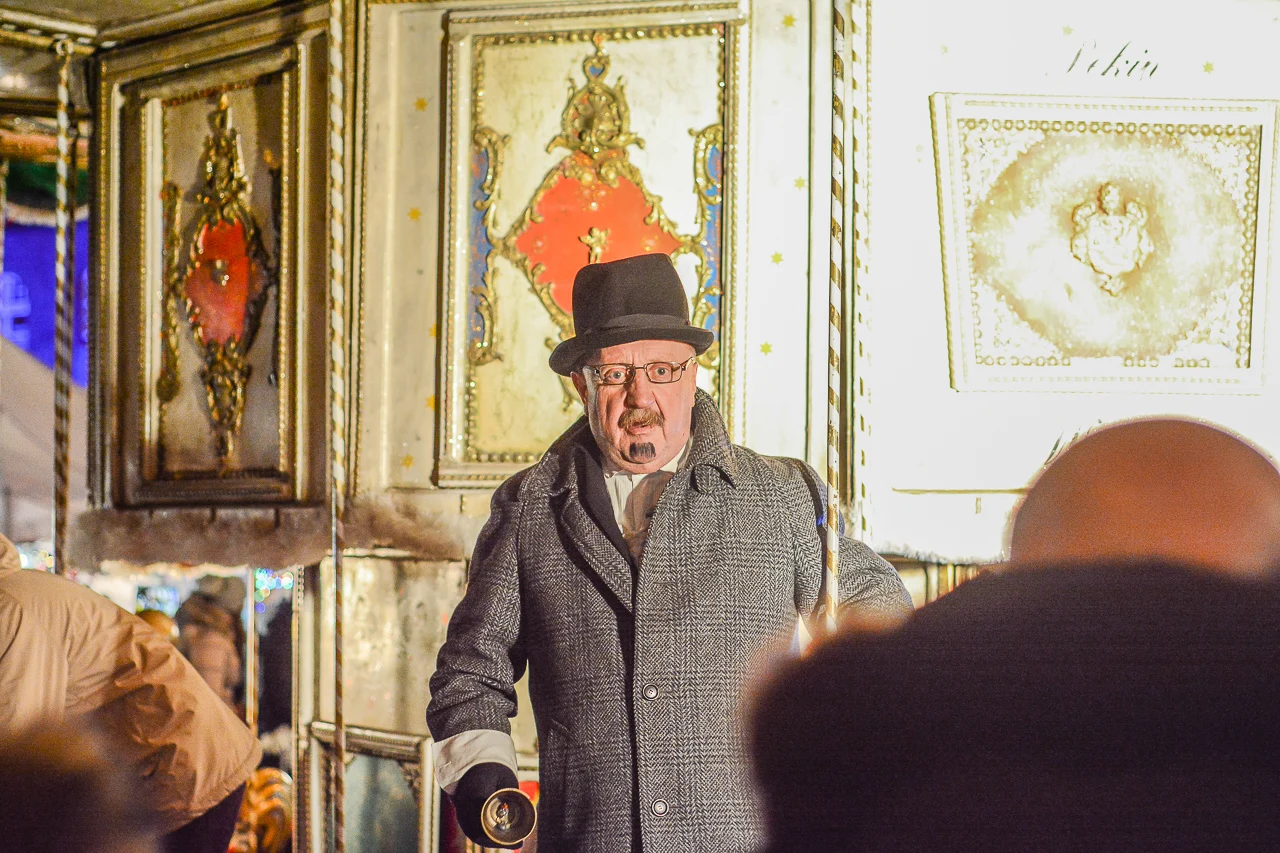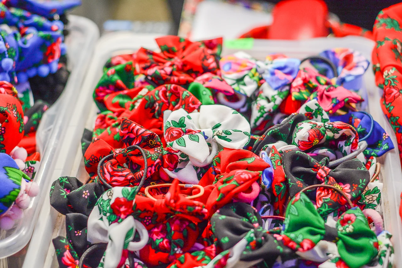 Samych stoisk również było bardzo dużo – od gastronomii (tu wydzielono częściowo osobną strefę), przez przyprawy, słodycze i sery, rękodzieło, obrazy, aż po odpustowe bibeloty (choć tych było, na szczęście, najmniej). Do tego karuzela, miejsca do sesji zdjęciowych, i podświetlane ozdoby świąteczne. Było kolorowo, głośno, a świąteczna muzyka mieszała się z gwarem rozmów i smakowitymi zapachami.