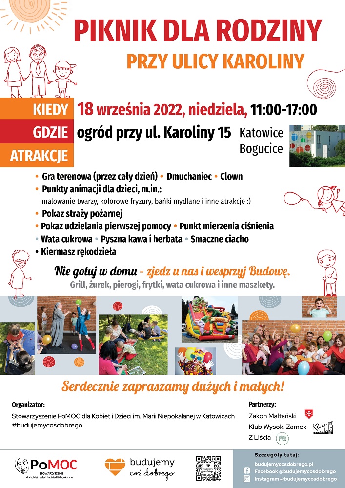Tego jeszcze nie było! Siostra Anna Bałchan i Stowarzyszenie Po MOC dla Kobiet i Dzieci im. Marii Niepokalanej w Katowicach serdecznie zapraszają na rodzinny piknik w niedzielę 18 września, w godzinach 11:00-17:00.