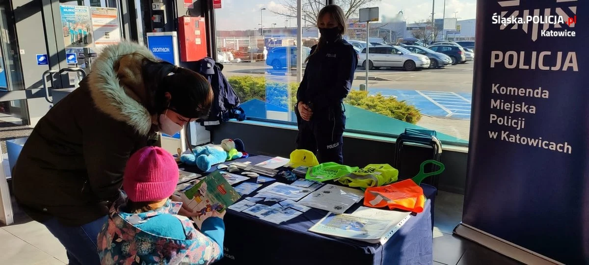 Z okazji trwających ferii zimowych policjantki z katowickiej komendy w sklepie sportowym przy ul. Alpejskiej zachęcały rodziców aby przed wyjazdem w góry na zimowe sporty przeprowadzili rozmowę ze swoimi dziećmi o bezpieczeństwie na stoku. Znajomość 10 punktowego „Śnieżnego dekalogu narciarza” pomoże naszym dzieciom zminimalizować zagrożenie na stoku. Policjantki na stanowisku profilaktycznym w formie zabawy uczyły właściwych zachowań w czasie zimowego wypoczynku. Prawidłowe rozwiązanie zadań policjantki nagradzały upominkami m.in.: kamizelką odblaskową, siedziskami do zjazdów na śniegu i odblaskami. Ponadto mundurowe najmłodszych uczestników zabawy wyposażyły w jaskrawe czapki z daszkiem oraz chusty i opaski „NIEZGUBKI”, które mają za zadanie pomóc w szybkim odnalezieniu zguby dzięki wpisanemu na nich numerowi telefonu do opiekuna. Działania przeprowadzono w ramach kampanii „Kręci mnie bezpieczeństwo na stoku” oraz „Mamo, Tato tutaj jestem”.