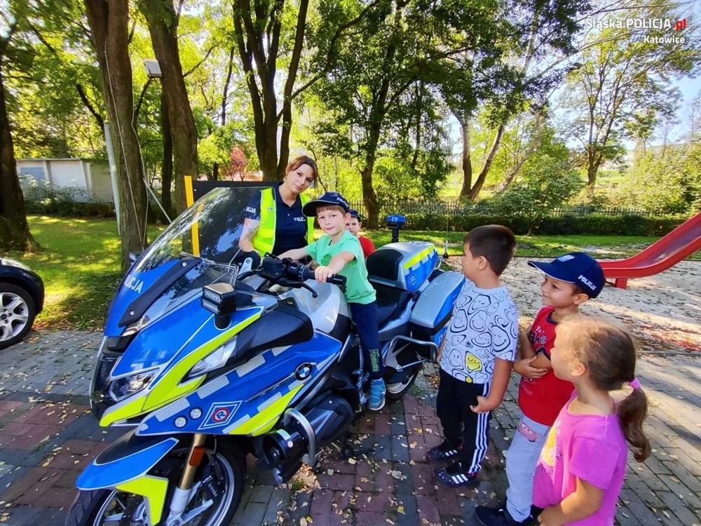 Funkcjonariusze Komendy Miejskiej Policji w Katowicach opowiedzieli na zaproszenie przedszkolaków i odwiedzili Miejskie Przedszkole Nr 50 z Oddziałami Integracyjnymi w Katowicach. Podczas wizyty na dzieci czekał szereg atrakcji poszerzony o niezbędną wiedzę dotyczącą pracy policjanta oraz bezpieczeństwa na drodze. Najlepszy przekaz wiedzy to obrazki i opowiadanie na podstawie bajki. W ten właśnie sposób policjanci przybliżyli dzieciom codzienną pracę policjanta. Kolejnymi niespodziankami były: maskotka SZNUPEK oraz radiowozy katowickiej Policji. Przedszkolaki mogły wsiąść na policyjny motocykl, a także do dwóch radiowozów, aby choć na chwilę wcielić się w rolę policjanta. Funkcjonariusze zadbali również o to, aby przypomnieć przedszkolakom podstawowe zasady bezpiecznego korzystania z katowickich dróg.