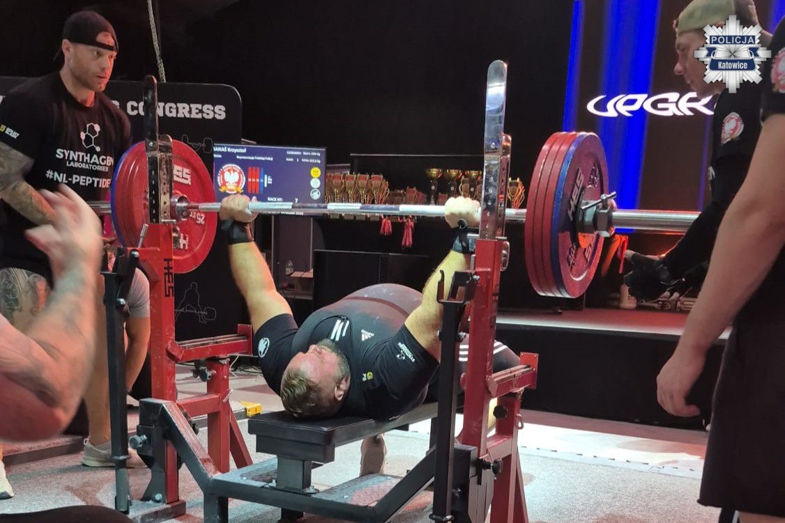 Asp. szt. Krzysztof Banaś – Dyżurny Komisariatu Policji III w Katowicach, osiągnął imponujący wynik, wyciskając 217,5 kg, co pozwoliło mu zdobyć: