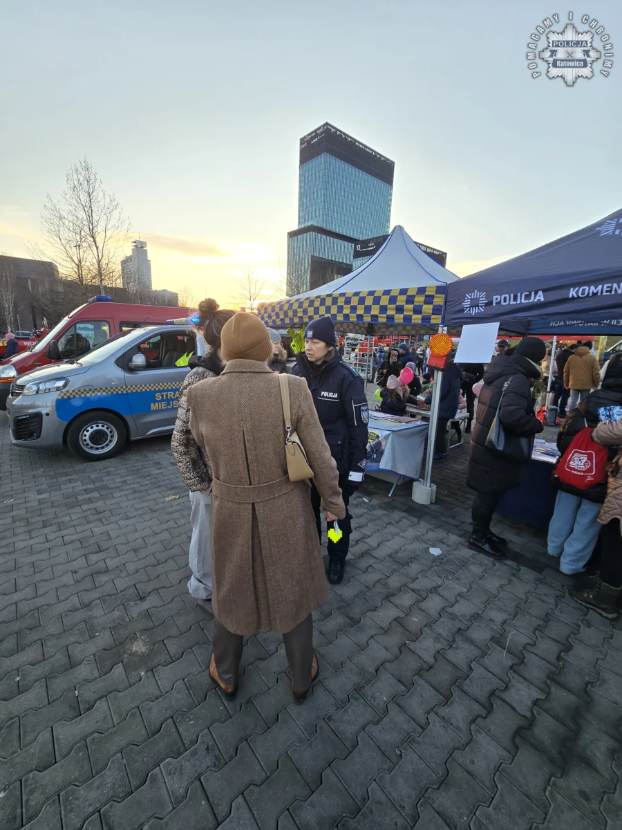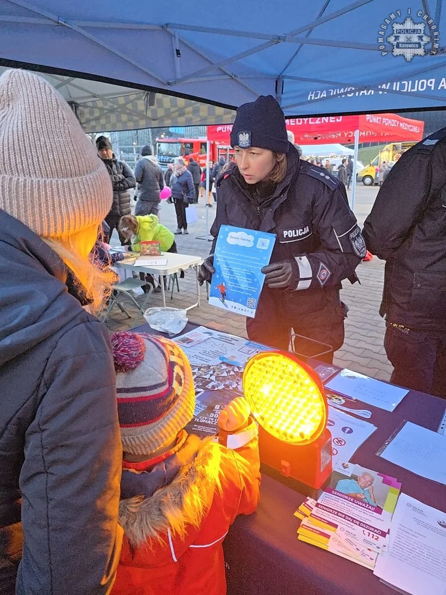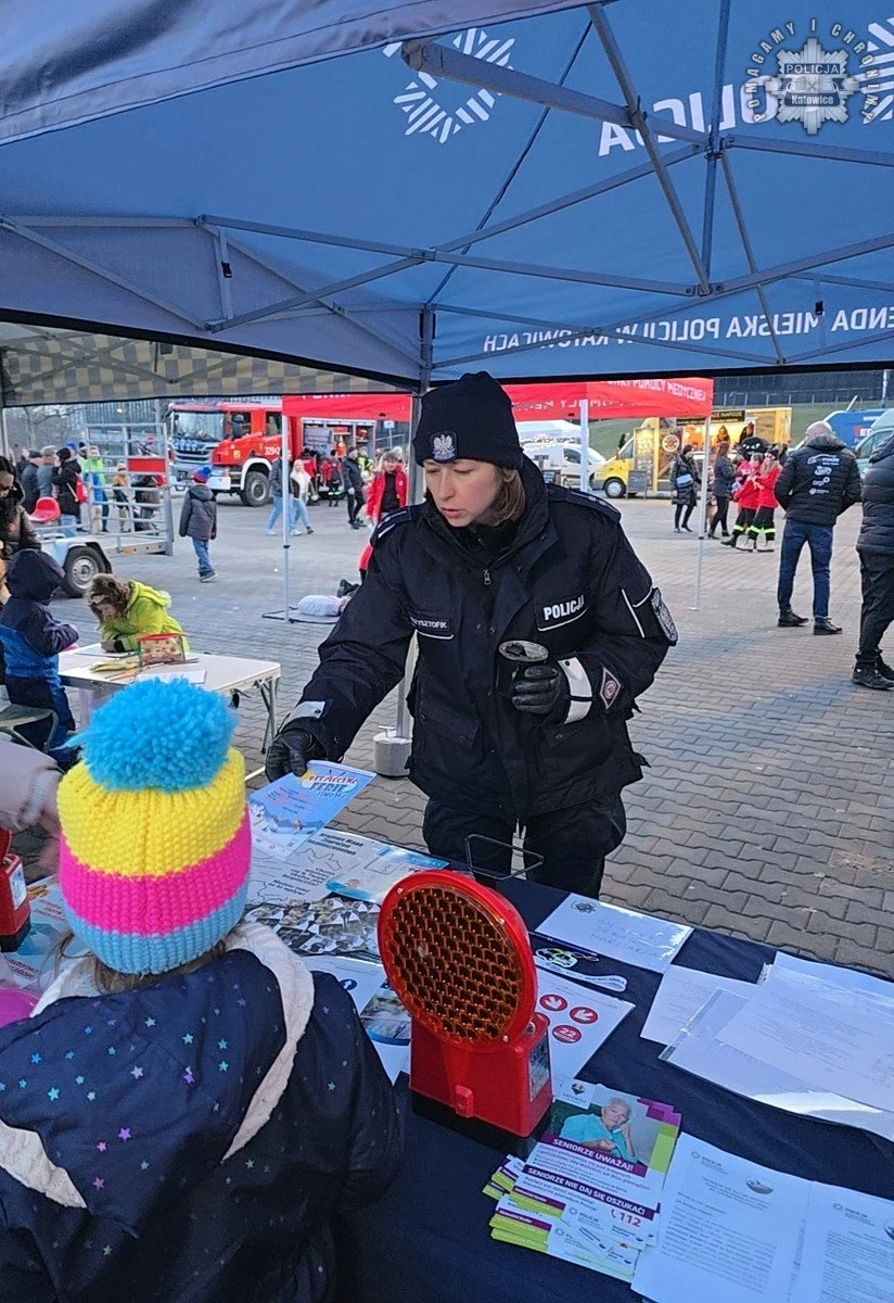 W katowickiej Strefie Kultury, gdzie odbywała się główna część finału, policjanci przygotowali stanowisko profilaktyczne. Uczestnicy mogli porozmawiać z funkcjonariuszami o bezpieczeństwie w ruchu drogowym i podczas ferii zimowych. Mundurowi zachęcali także do wstąpienia w szeregi policji, informując, jak wygląda proces rekrutacji.