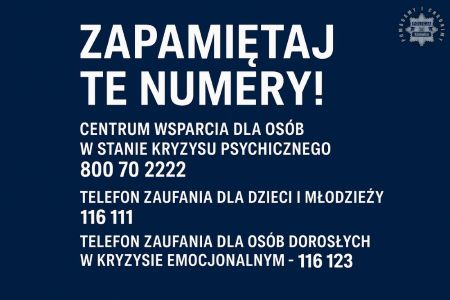 - 116 123 – Ogólnopolska Poradnia Telefoniczna dla Osób Przeżywających Kryzys Emocjonalny