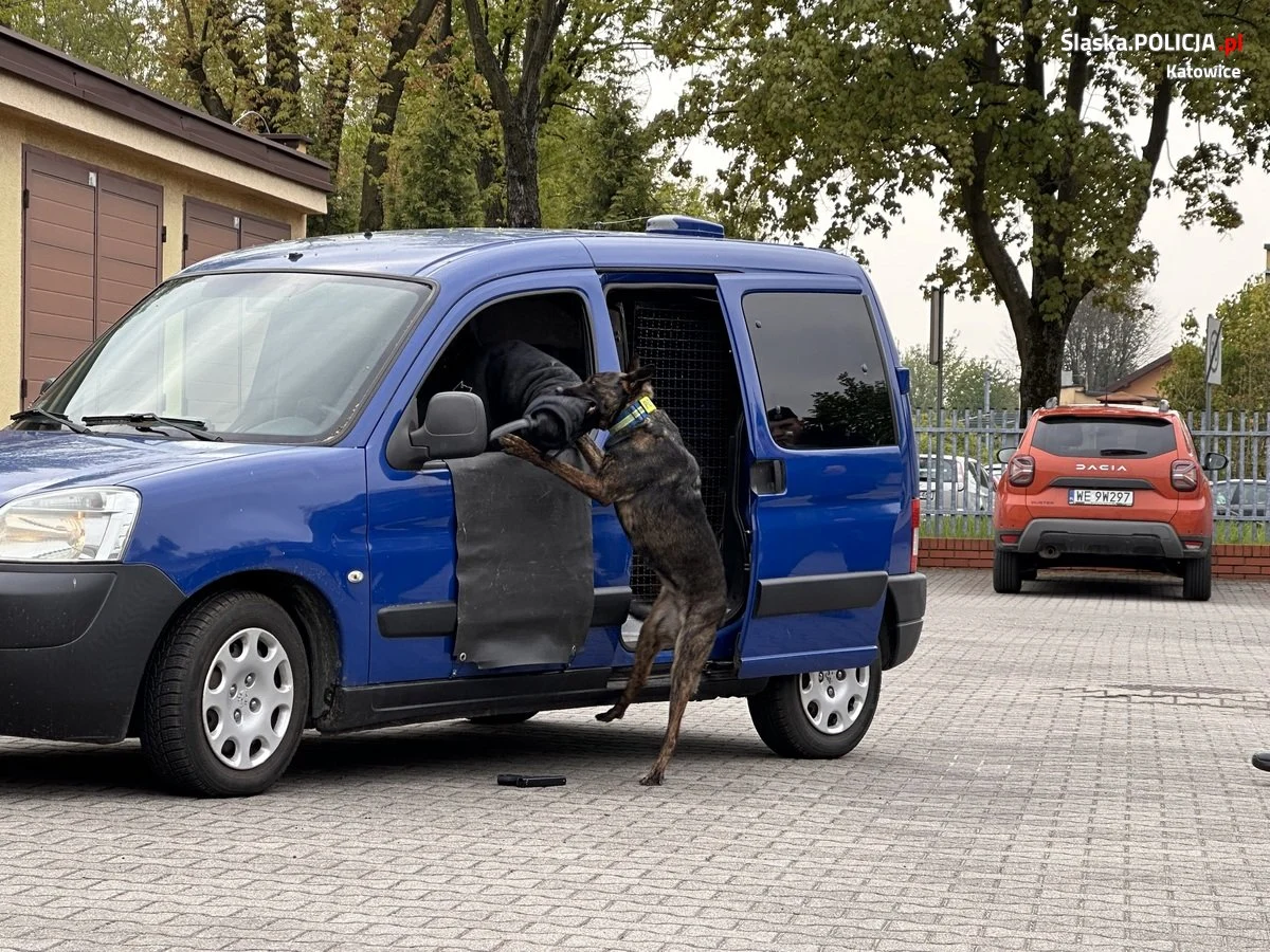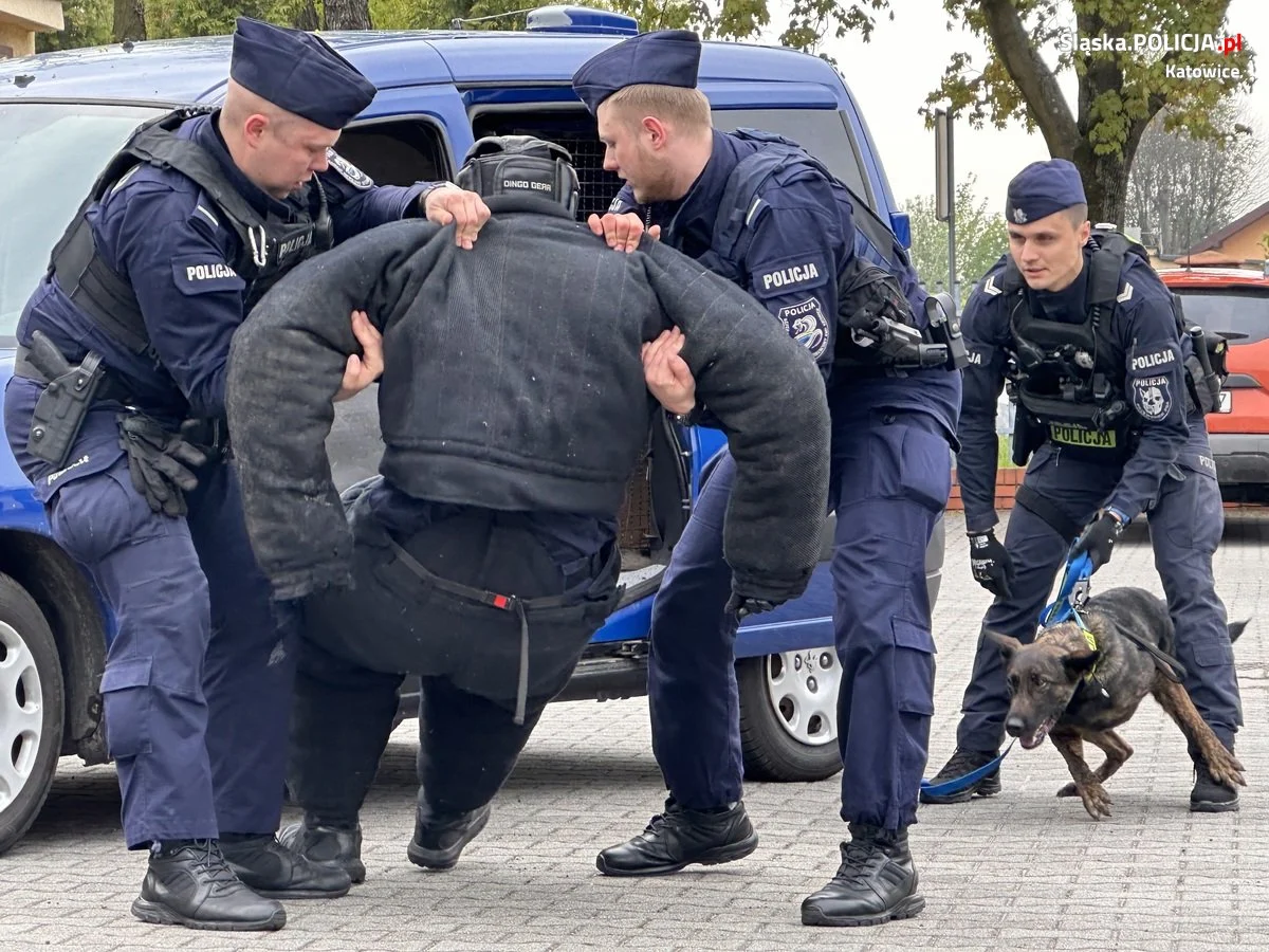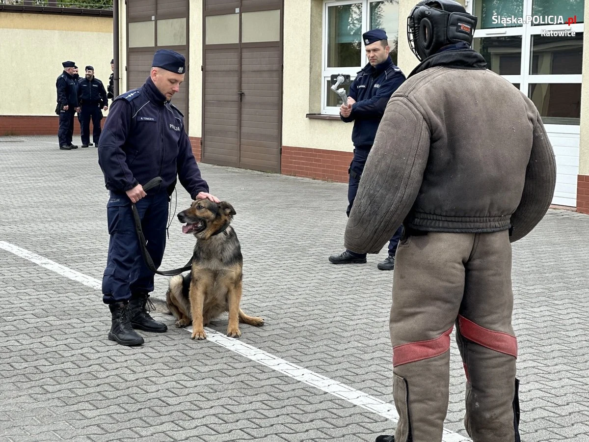 Policyjni przewodnicy psów służbowych i profilaktycy z Wydziału Prewencji Komendy Miejskiej Policji w Katowicach wspólnie z uczniami klasy mundurowej XV LO w Katowicach odwiedzili Szkołę Policji w Katowicach. Powodem odwiedzin był pokaz wyszkolenia psów służbowych, który przygotowali przewodnicy katowickiej komendy. Policjanci wraz ze swoimi czworonożnymi partnerami zaprezentowali ćwiczenia i symulacje różnych sytuacji, które wystąpiły w codziennej służbie. Uczniowie klasy mundurowej a także młodzi policjanci ze szkolenia zawodowego podstawowego mogli zobaczyć pokazy przeszukania pomieszczeń w celu odnalezienia substancji psychoaktywnych czy materiałów wybuchowych. Dodatkowo zaprezentowano trening posłuszeństwa, interwencję z użyciem psa służbowego wobec osoby uzbrojonej w niebezpieczne narządzie oraz taktykę postępowania z osobami zbiorowo naruszającymi porządek publiczny. Pokaz umiejętności czworonogów został ukoronowany działaniami pościgowymi za sprawcą rozboju z użyciem niebezpiecznego narzędzia. Psy i ich przewodnicy z każdym zadaniem poradzili sobie wyśmienicie.