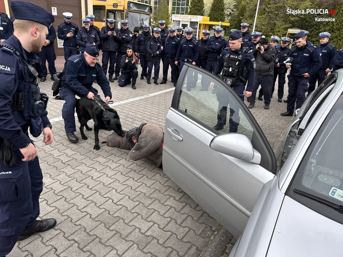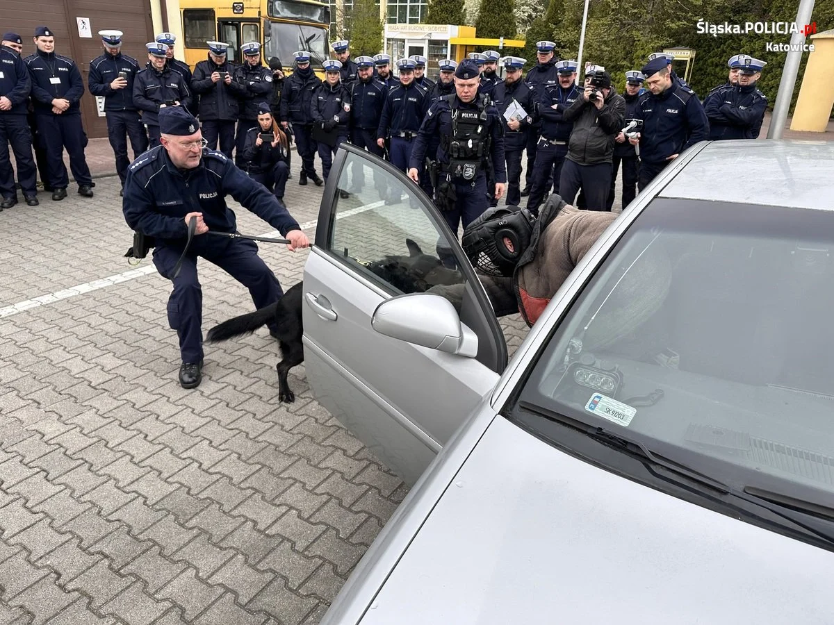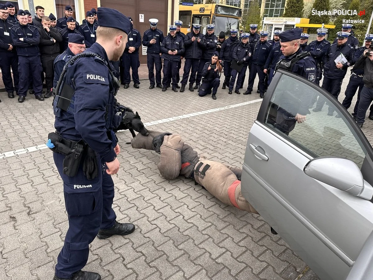 Obserwujący treningi słuchacze szkoleń zawodowych podstawowych wspólnie z uczniami klasy mundurowej Liceum Ogólnokształcącego nr 15 im. rtm. W. Pileckiego w Katowicach mieli możliwość zobaczyć, jak wygląda służba psów policyjnych i ich przewodników, jakie są rodzaje psów służbowych i poznać wiele ciekawostek z zakresu kynologii policyjnej.