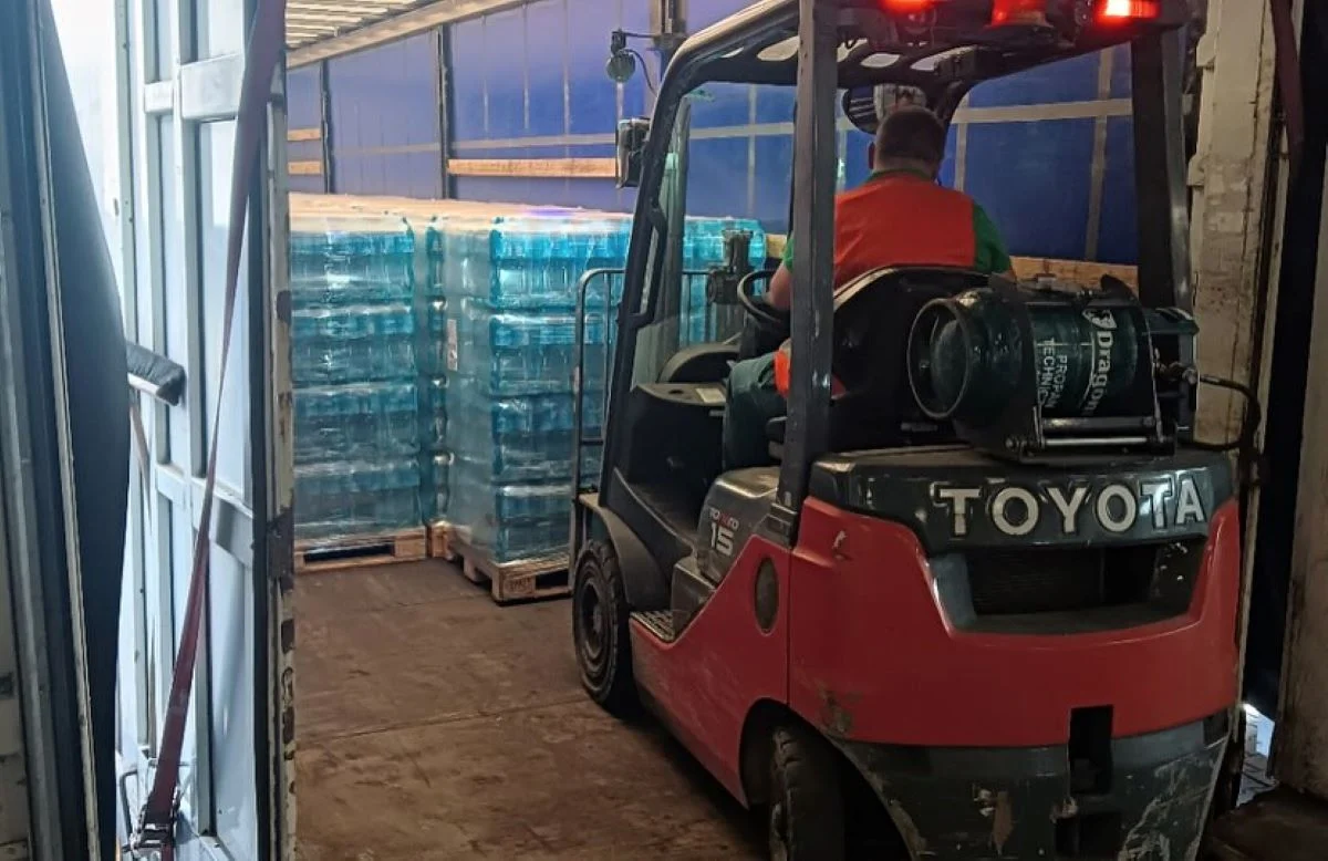 Ciężarówka z 15 tysiącami butelek wody mineralnej wyruszyła z Katowic do Głuchołazów