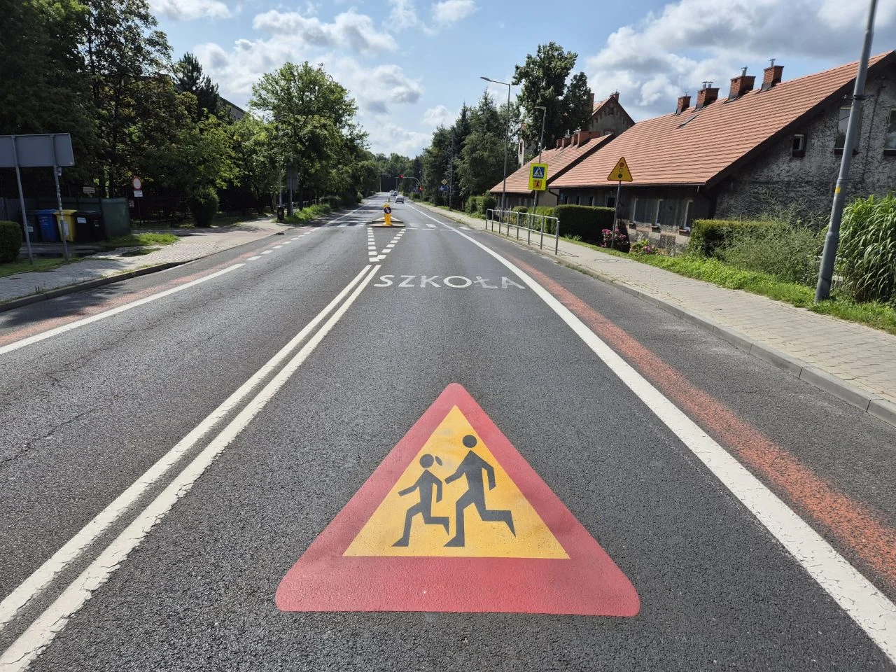 Odtworzono także duże piktogramy „Uwaga dzieci”, również w trwałej technologii termoplastycznej. W tym roku wykonano 30 takich znaków. Rozpoczęto też wykonywanie na jezdni napisów „Szkoła” – z założeniem, że zadanie to będzie kontynuowane w kolejnych latach, tak aby strefy szkolne były wyraźnie i długotrwale oznakowane. 40 tego typu napisów (także z wykorzystaniem technologii termoplastycznej) pojawiło się w tym roku m.in. przy ul. Wróblewskiego, Oswobodzenia i Lwowskiej.
