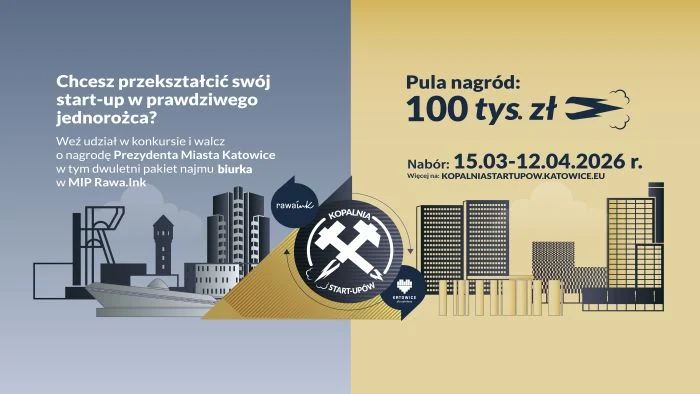 Na najlepszych czeka pula nagród w wysokości 100 tysięcy złotych, w tym pakiety najmu biurek w Miejskim Inkubatorze Przedsiębiorczości Rawa.Ink w Katowicach.
